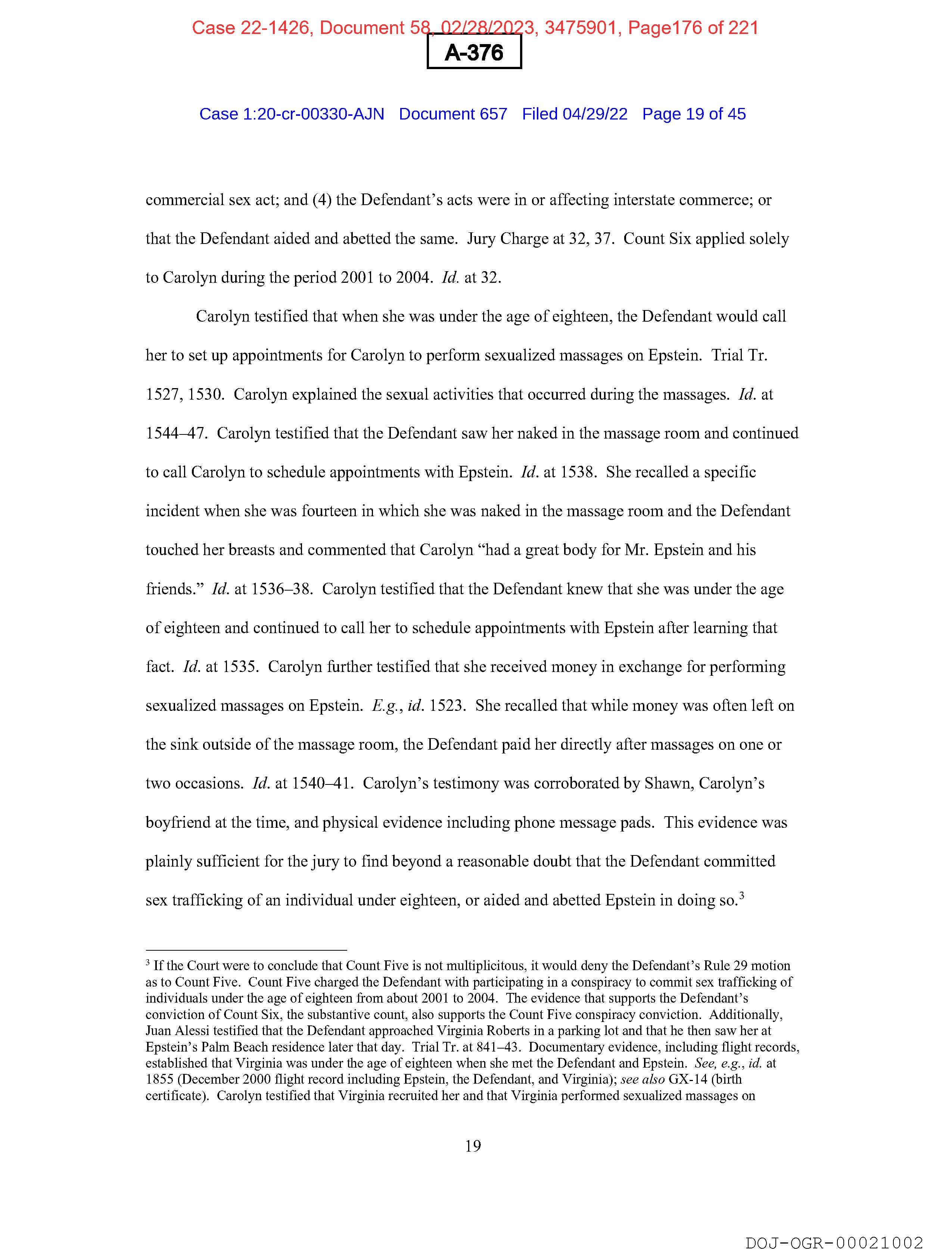 The image displays a scanned document with visible text and some blacked-out sections. The text appears to be from an official letter or report, possibly related to a legal case given the references to "Judge" and "Courtroom." There are also mentions of names that have been redacted. However, without more context, it's not possible to determine the exact nature of the document. The text is printed in black ink on a white background, indicating a standard typewritten format.