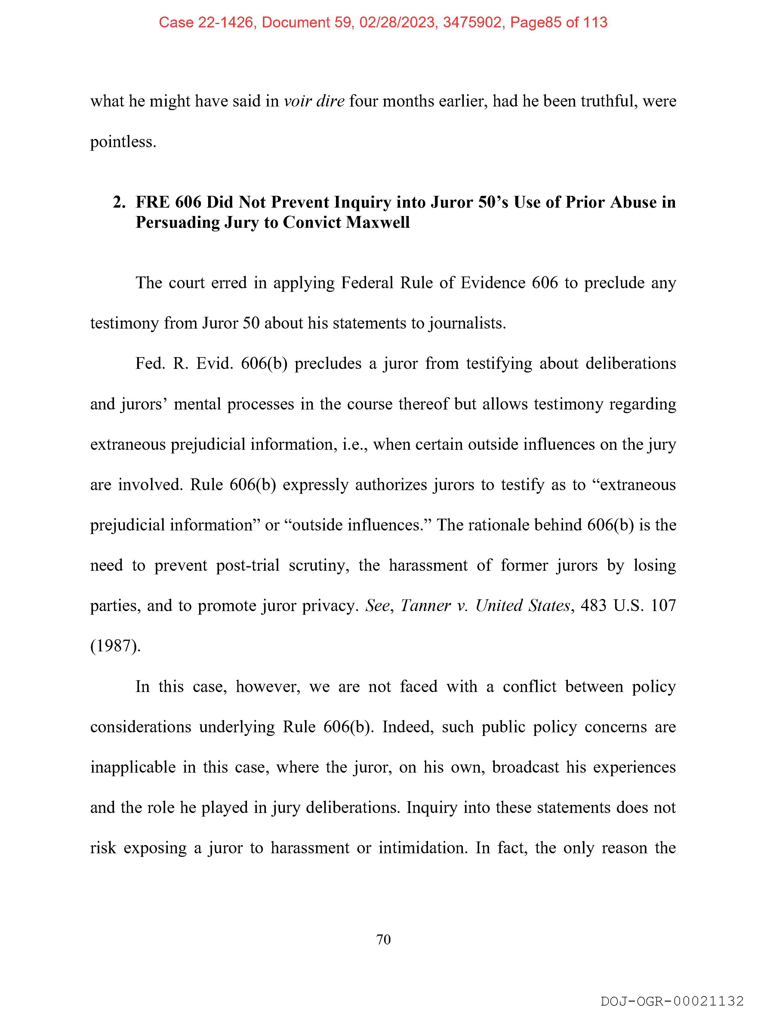 The image displays a scanned document with visible text and some blacked-out sections. The text appears to be from an official letter or report, possibly related to a legal case given the references to "Judge" and "Courtroom." There are also mentions of names that have been redacted. However, without more context, it's not possible to determine the exact nature of the document. The text is printed in black ink on a white background, indicating a standard typewritten format.