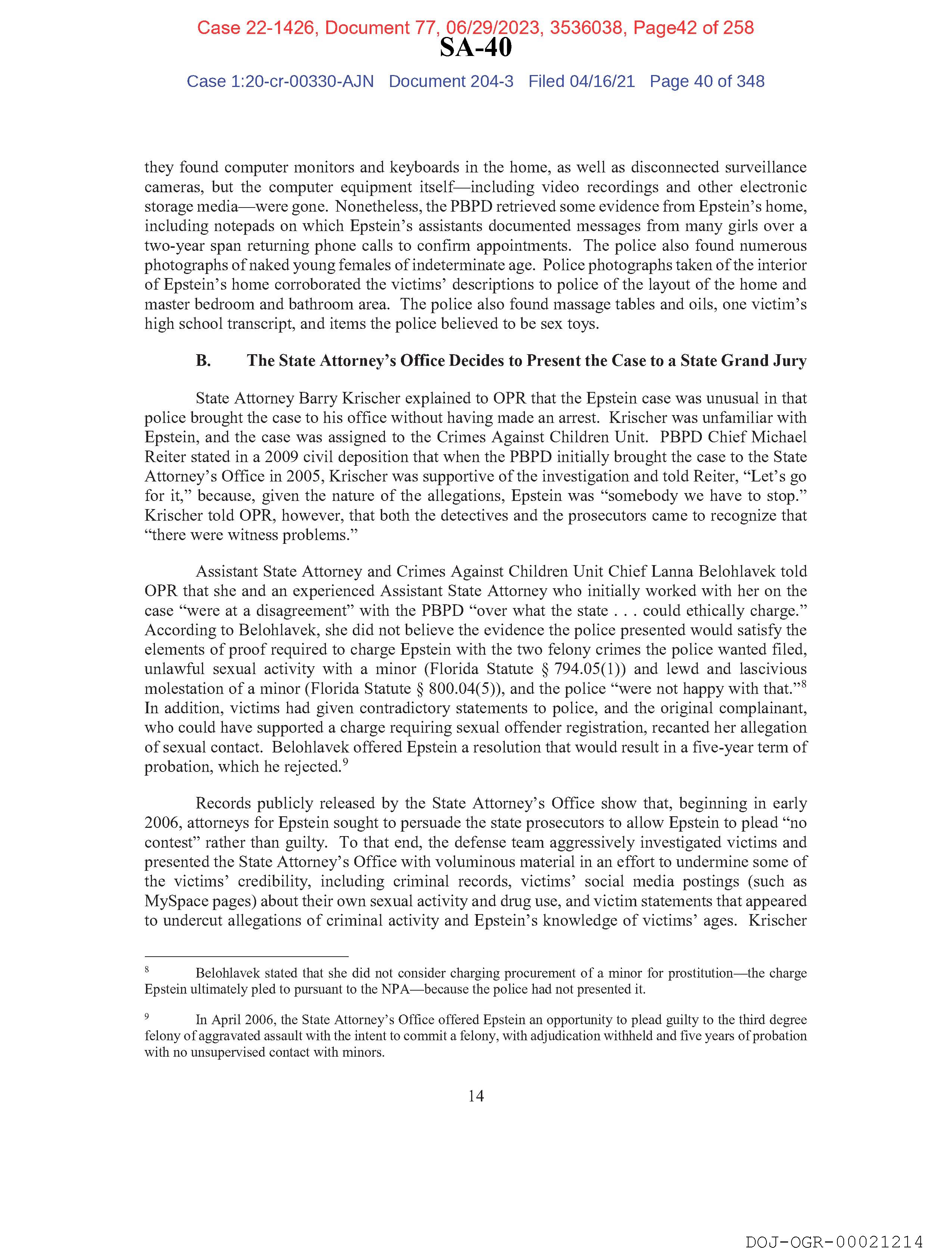 The image displays a document with printed text and handwritten annotations. The document appears to be an official report or a legal transcript, possibly from a court proceeding or investigative interview. It contains sections labeled "Q" for questions and "A" for answers, suggesting a structured questioning format. In the visible portions of the text, there are references to New York City locations such as Times Square and Central Park, indicating that the subject matter pertains to events or individuals associated with these places. The handwritten annotations include lines drawn through certain parts of the document, likely to indicate redactions or areas of emphasis. There is also a highlighted section with an arrow pointing at it, which might be drawing attention to a specific part of the text for further discussion or reference. The image quality is not high enough to read all the details of the text, but the overall layout and annotations suggest a formal and serious nature for the content of the document. The style of the image is realistic with no artistic modifications, focusing solely on the reproduction of the physical documents.