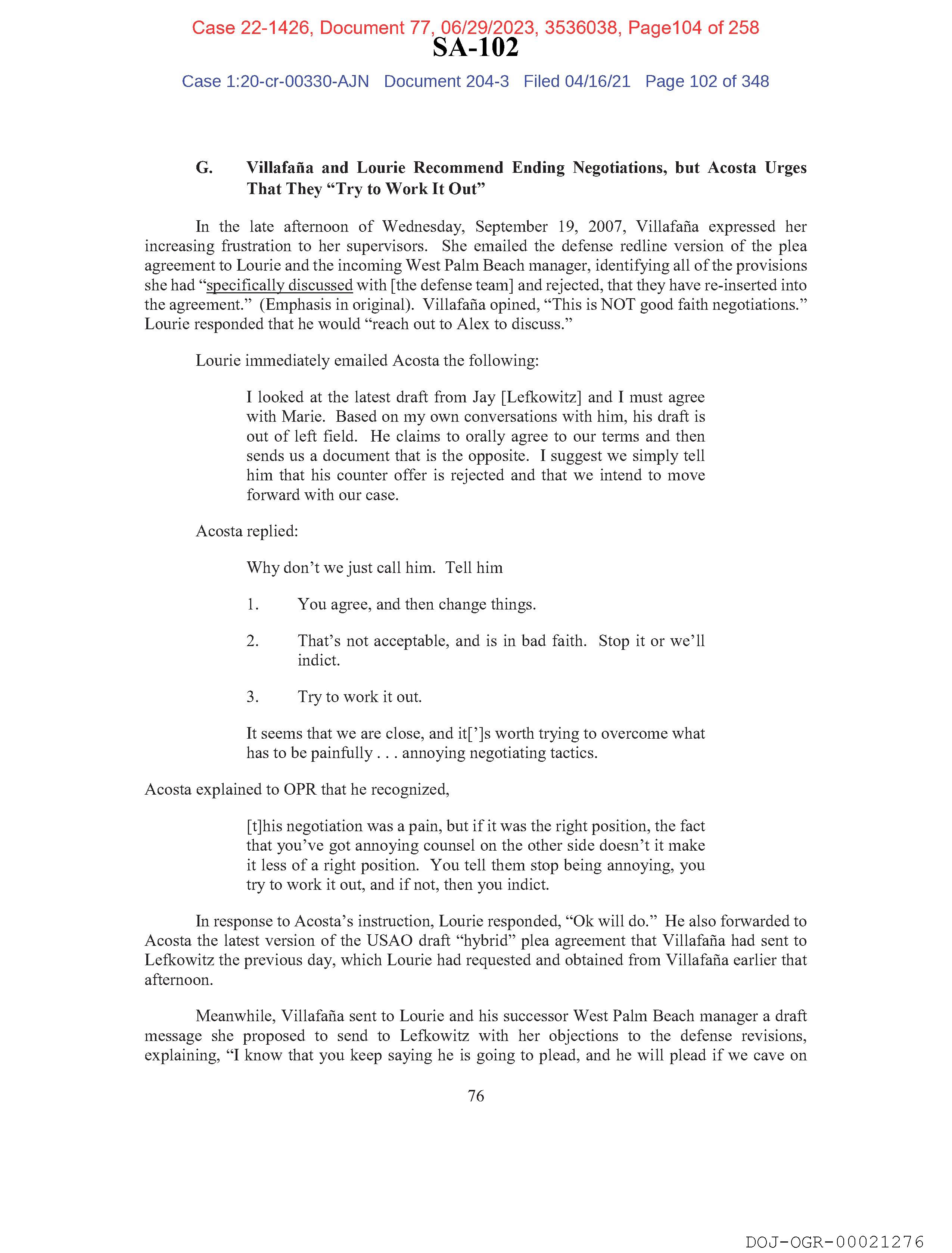 The image displays a scanned document with visible text and some blacked-out sections. The text appears to be from an official letter or report, possibly related to a legal case given the references to "Judge" and "Courtroom." There are also mentions of names that have been redacted. However, without more context, it's not possible to determine the exact nature of the document. The text is printed in black ink on a white background, indicating a standard typewritten format.