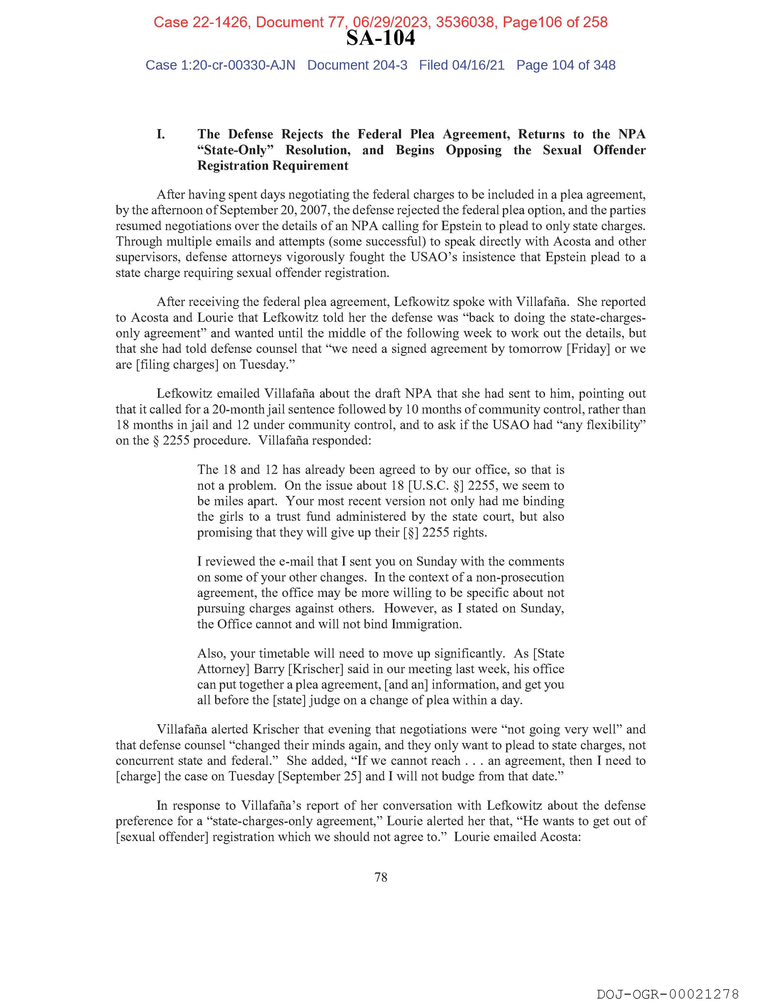 The image appears to be a photograph of a printed document from the Federal Bureau of Investigation (FBI). The top part of the document shows the FBI's official seal and logo. The document is partially redacted with black lines covering certain information, including names or other sensitive details that would typically identify individuals involved in an investigation. The visible text includes dates and references to legal proceedings such as "Case Number" and a court citation. There are also instructions for handling the document, indicating it is a restricted piece of evidence related to an ongoing case.