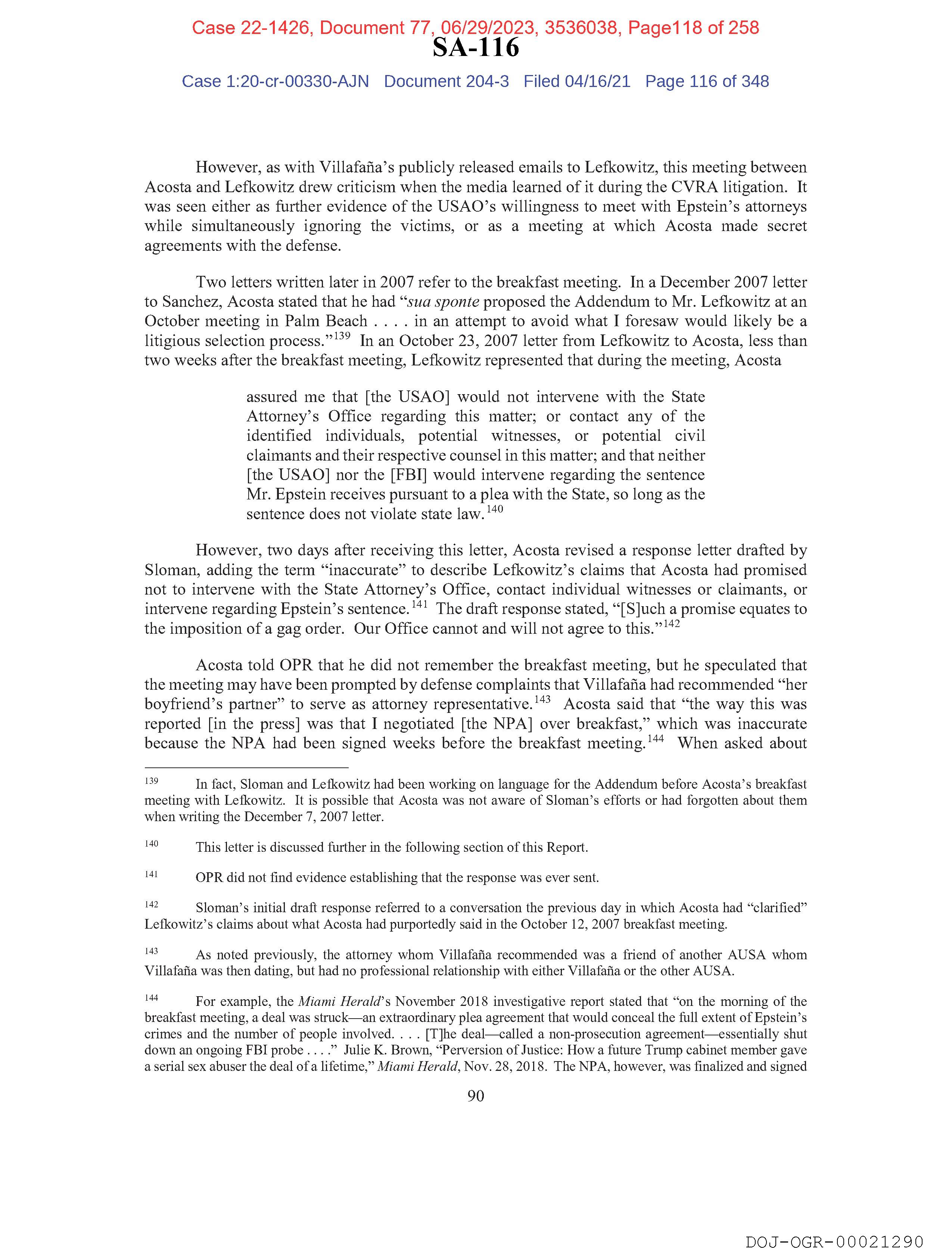 The image displays a scanned document with visible text and some blacked-out sections. The text appears to be from an official letter or report, possibly related to a legal case given the references to "Judge" and "Courtroom." There are also mentions of names that have been redacted. However, without more context, it's not possible to determine the exact nature of the document. The text is printed in black ink on a white background, indicating a standard typewritten format.