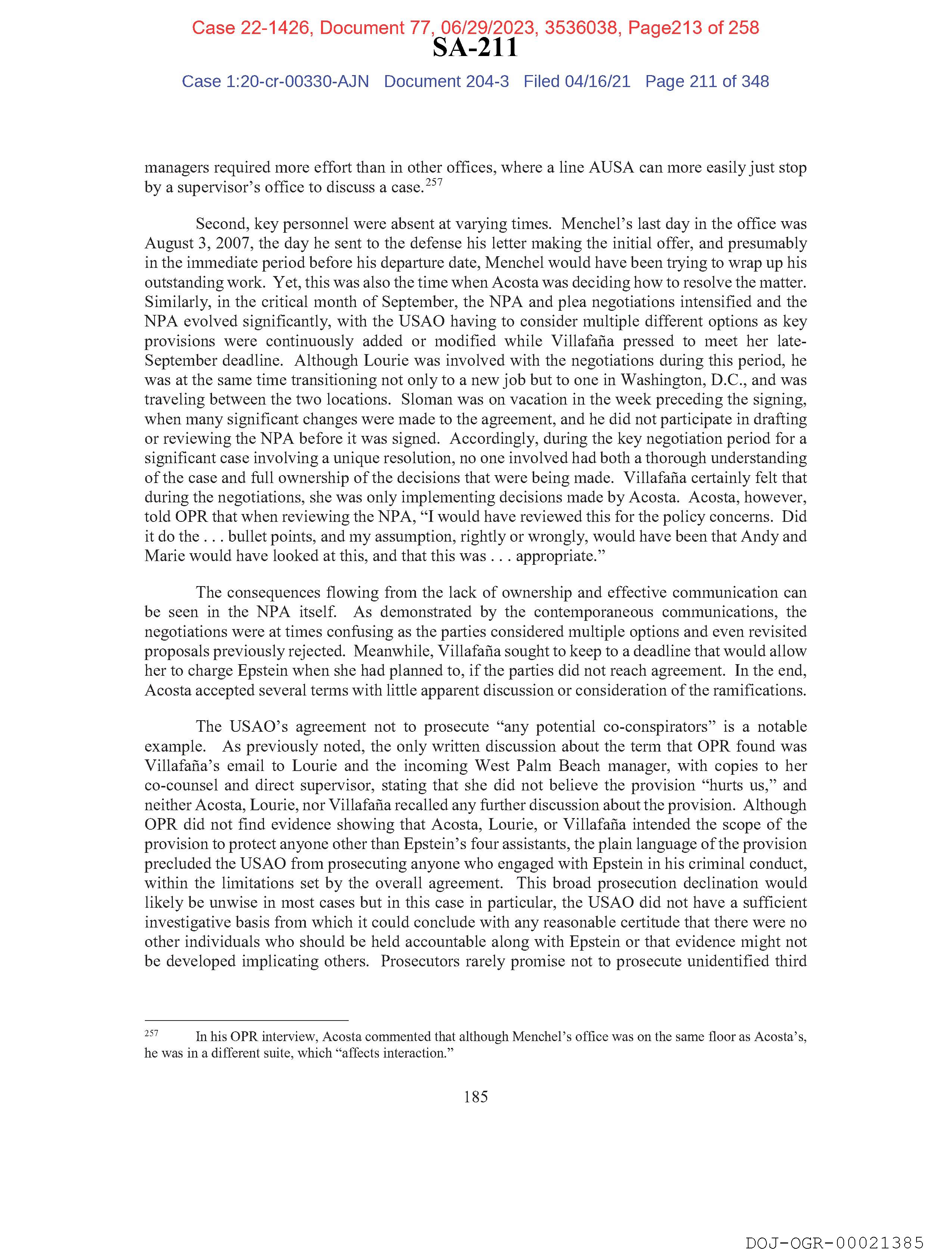 The image displays a scanned document with visible text and some blacked-out sections. The text appears to be from an official letter or report, possibly related to a legal case given the references to "Judge" and "Courtroom." There are also mentions of names that have been redacted. However, without more context, it's not possible to determine the exact nature of the document. The text is printed in black ink on a white background, indicating a standard typewritten format.