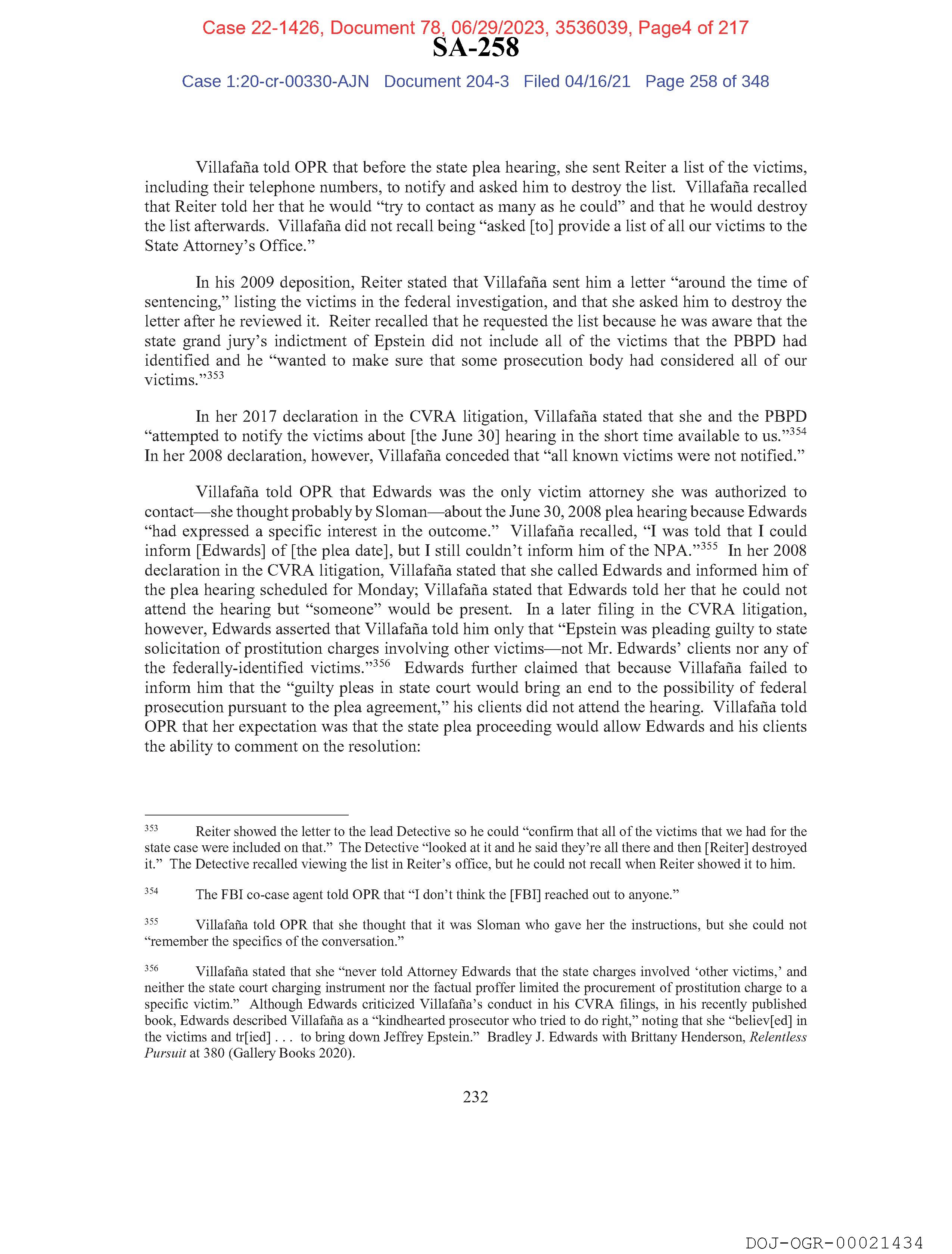 The image displays a scanned document with visible text and some blacked-out sections. The text appears to be from an official letter or report, possibly related to a legal case given the references to "Judge" and "Courtroom." There are also mentions of names that have been redacted. However, without more context, it's not possible to determine the exact nature of the document. The text is printed in black ink on a white background, indicating a standard typewritten format.