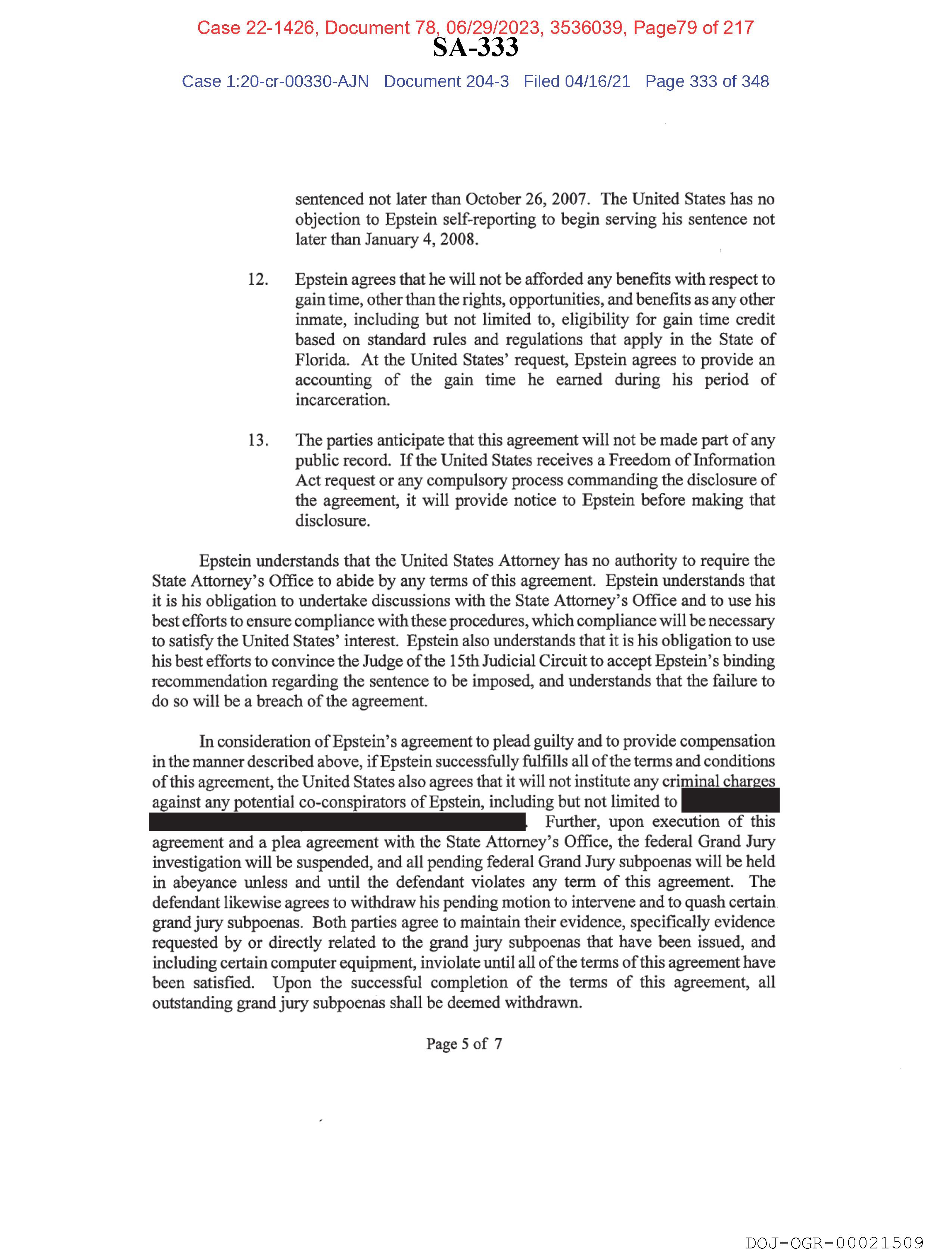 The image displays a scanned document with visible text and some blacked-out sections. The text appears to be from an official letter or report, possibly related to a legal case given the references to "Judge" and "Courtroom." There are also mentions of names that have been redacted. However, without more context, it's not possible to determine the exact nature of the document. The text is printed in black ink on a white background, indicating a standard typewritten format.