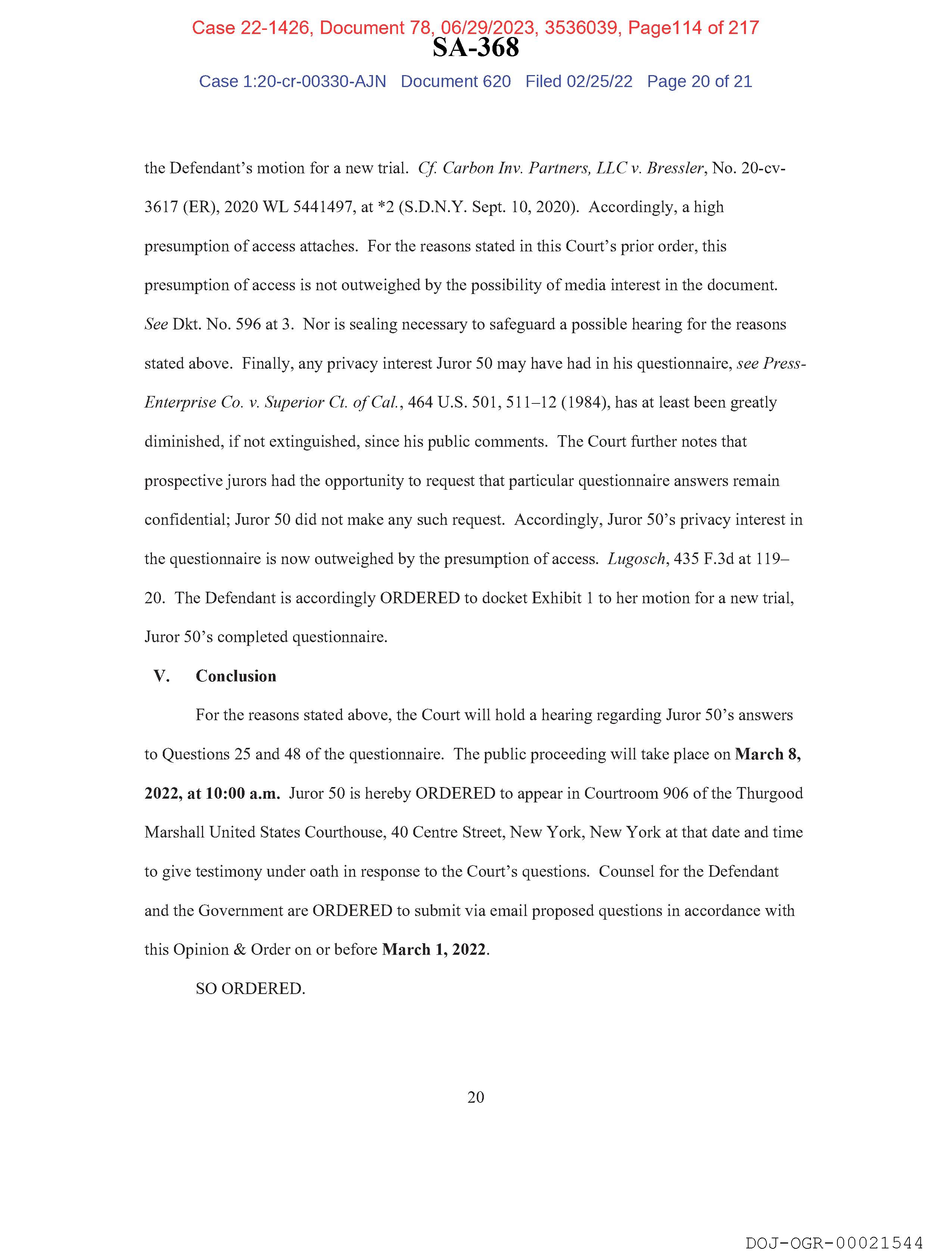 The image displays a scanned document with visible text and some blacked-out sections. The text appears to be from an official letter or report, possibly related to a legal case given the references to "Judge" and "Courtroom." There are also mentions of names that have been redacted. However, without more context, it's not possible to determine the exact nature of the document. The text is printed in black ink on a white background, indicating a standard typewritten format.