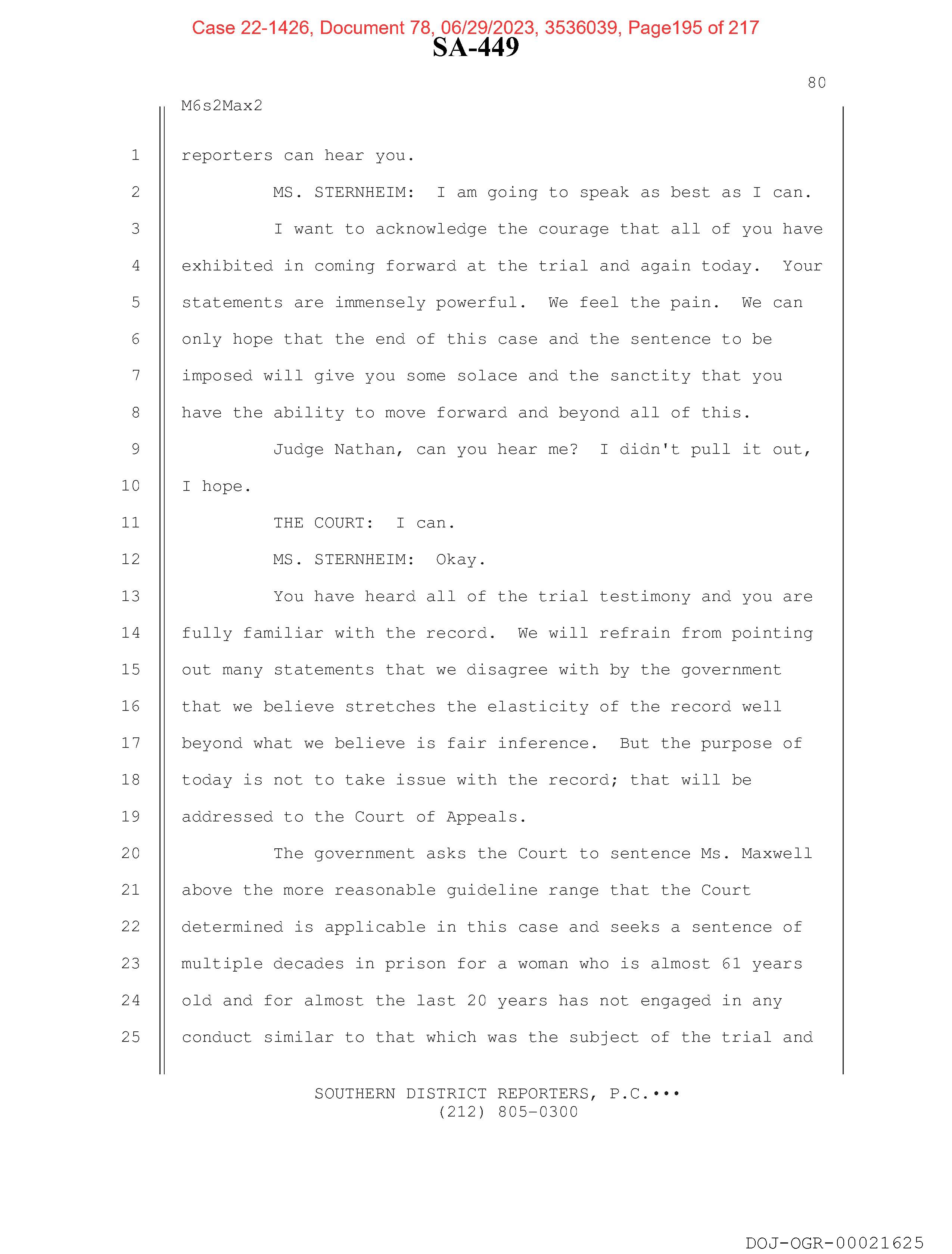 The image displays a scanned document with visible text and some blacked-out sections. The text appears to be from an official letter or report, possibly related to a legal case given the references to "Judge" and "Courtroom." There are also mentions of names that have been redacted. However, without more context, it's not possible to determine the exact nature of the document. The text is printed in black ink on a white background, indicating a standard typewritten format.
