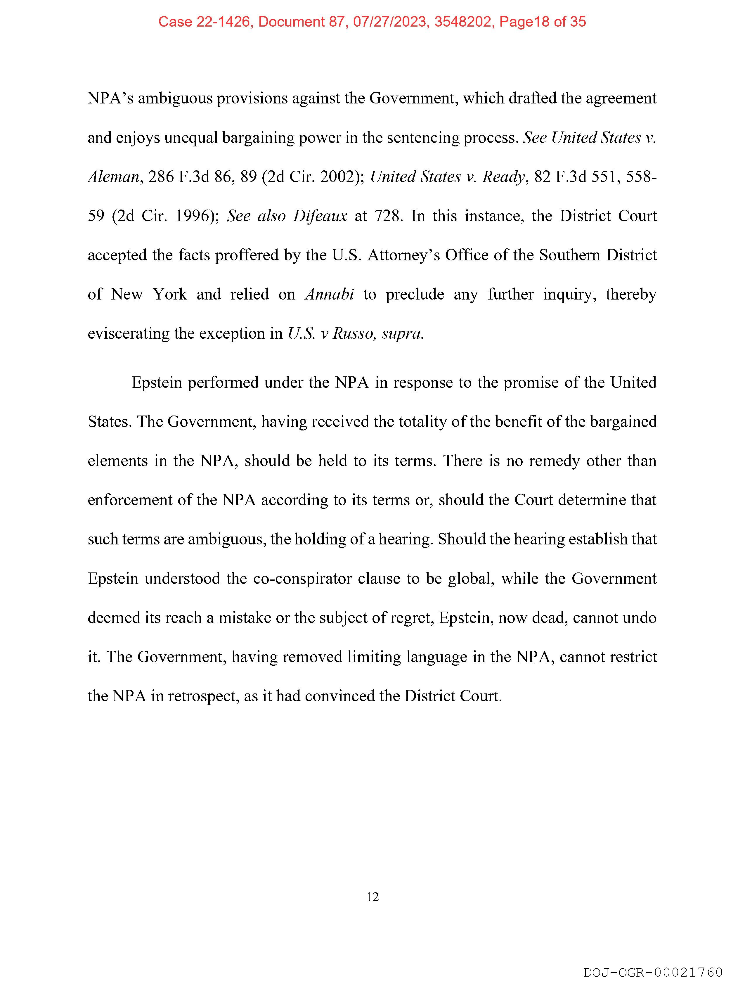 The image displays a printed document with black ink on white paper. It contains several paragraphs of text that appear to be related to legal proceedings or official statements. The text is too small and blurry to read in detail, but there are visible phrases such as "Ninth Circuit Court" and "U.S. District Court for the Southern District of New York." These phrases suggest that the document may pertain to court cases within the United States judicial system. There are no people or significant objects other than text on this printed page.