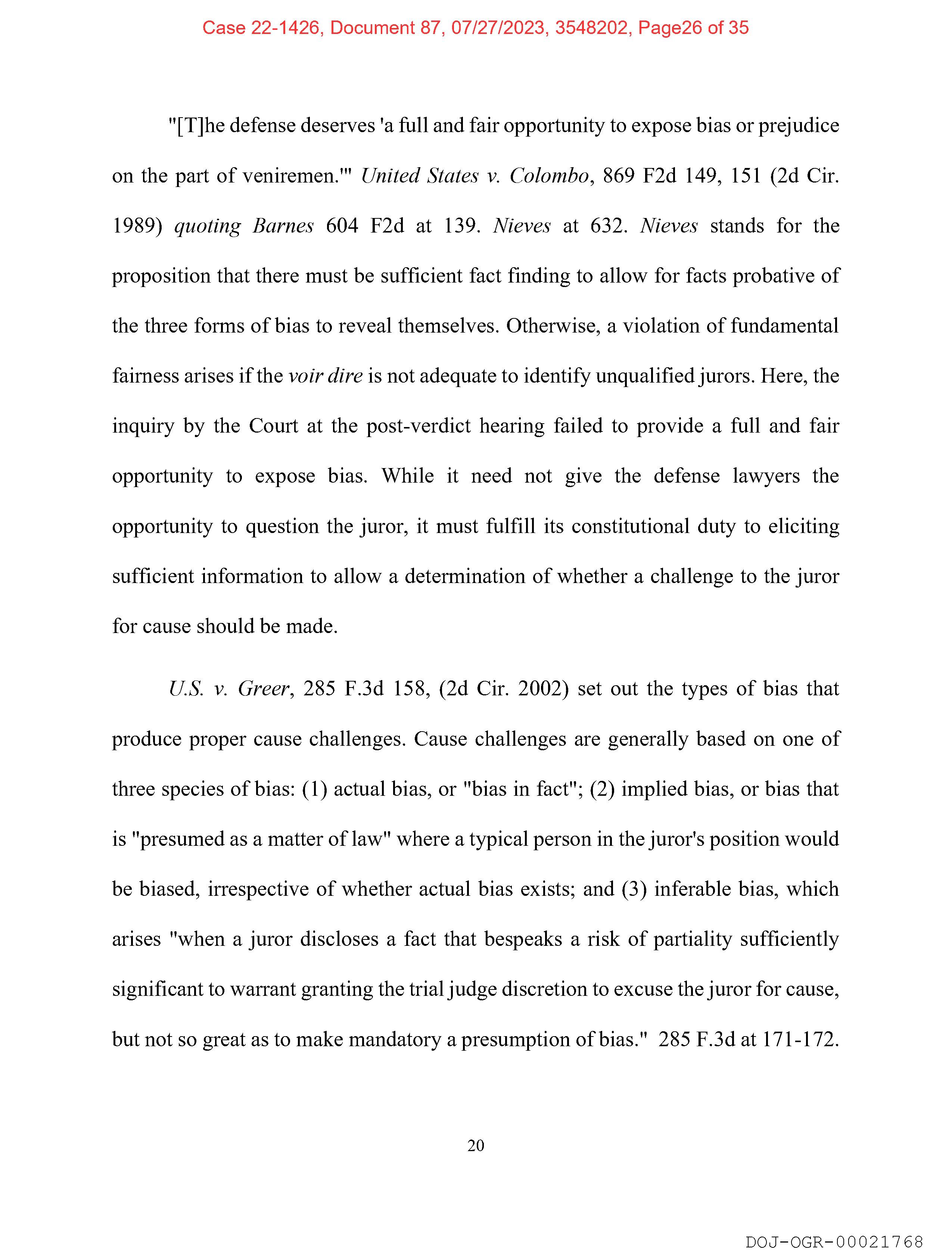 The image is a photograph of a document with typed text on it. The paper appears to be an official document, possibly related to legal matters or policy. At the top, there's a header that includes "Department of Justice" and "United States of America." Below this header are paragraphs that detail various sections, such as a summary of allegations against individuals named in the text. The names mentioned include "Robert Kelly" and others, suggesting the document may pertain to a legal case or investigation involving these individuals. The text is dense and discusses specific charges related to sex offenses and child exploitation.