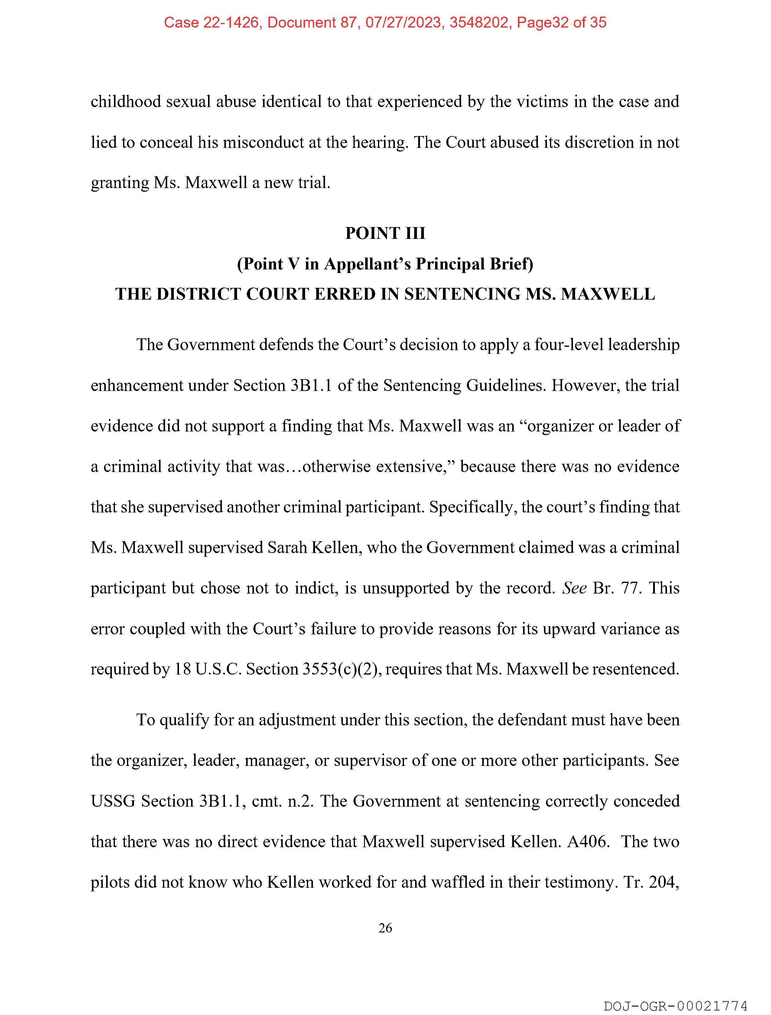 The image displays a scanned document with visible text and some blacked-out sections. The text appears to be from an official letter or report, possibly related to a legal case given the references to "Judge" and "Courtroom." There are also mentions of names that have been redacted. However, without more context, it's not possible to determine the exact nature of the document. The text is printed in black ink on a white background, indicating a standard typewritten format.