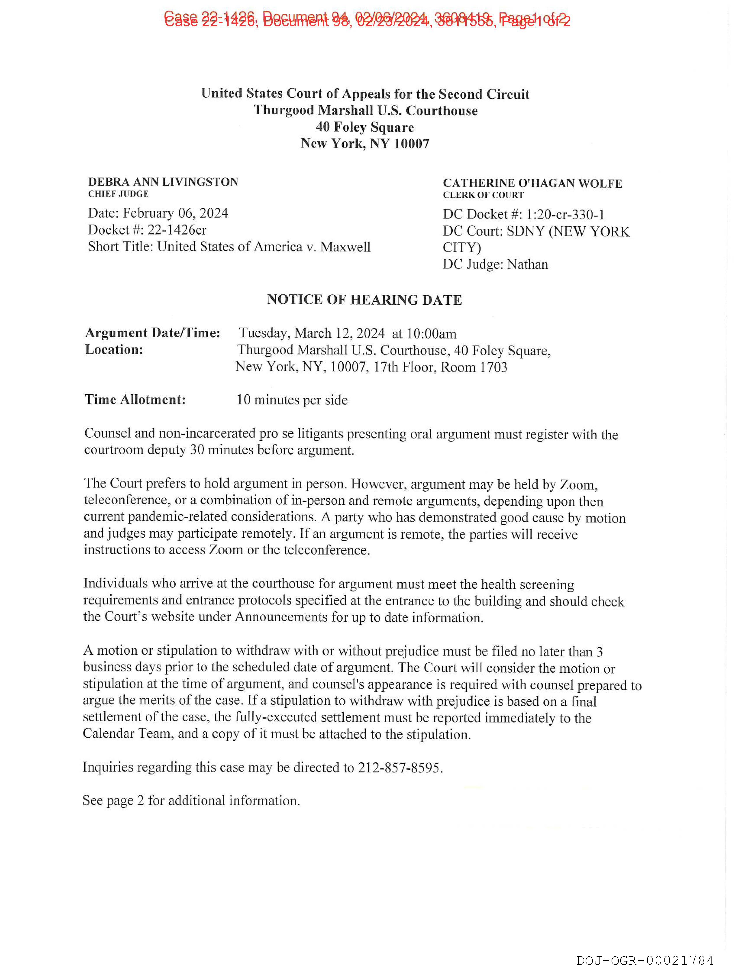 The image shows a document with redacted information at the top left corner where the name and address of an individual are typically found. Below that, there is text which appears to be from a legal document or formal letter, though specific details have been obscured. The visible part includes phrases like "United States District Court" and "NOTICE OF HEARING." The font is standard for official documents, and the color of the text is black on a white background. There's no indication of people or locations in the document itself, as it focuses solely on textual information.