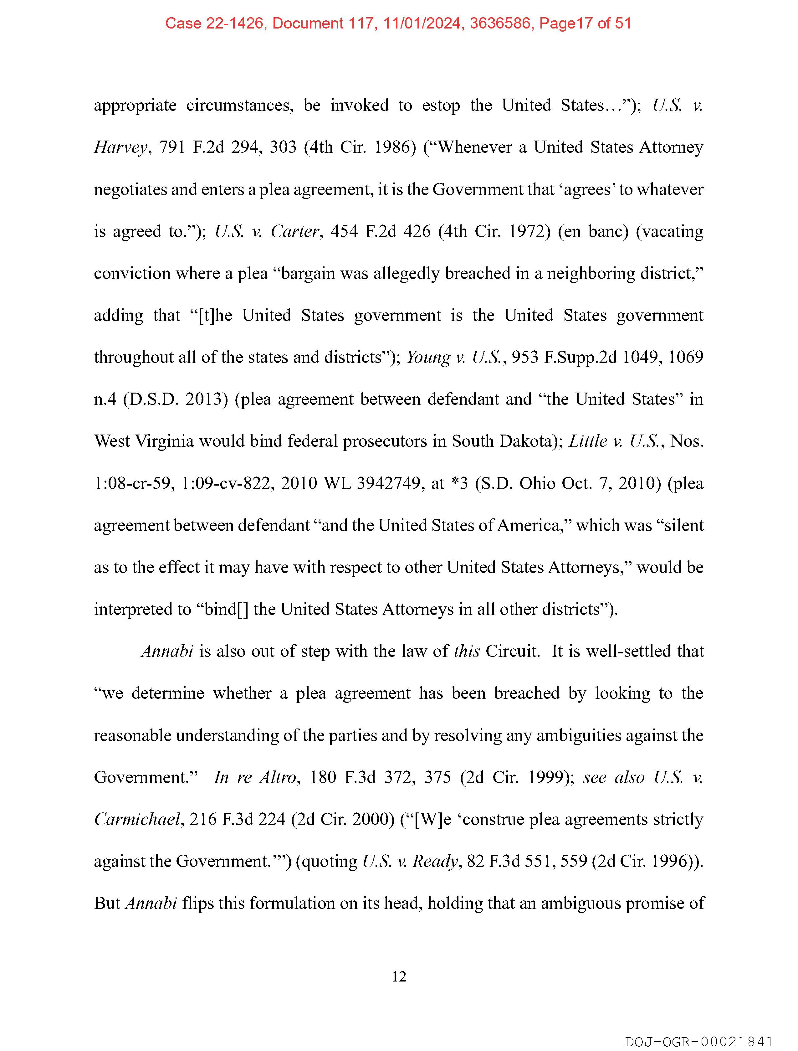 The image is a photograph of an official document from the United States District Court Southern District of New York. The document appears to be a legal filing or motion related to a case with several paragraphs of text detailing points and arguments for the court's consideration. It is dated, though the exact date is not fully visible in the image provided. At the top left corner, there is a stamp indicating that it has been filed or accepted by the court. The document's text and content are central to its purpose, but specific details such as names, case numbers, and legal jargon would typically be redacted for privacy and security reasons.