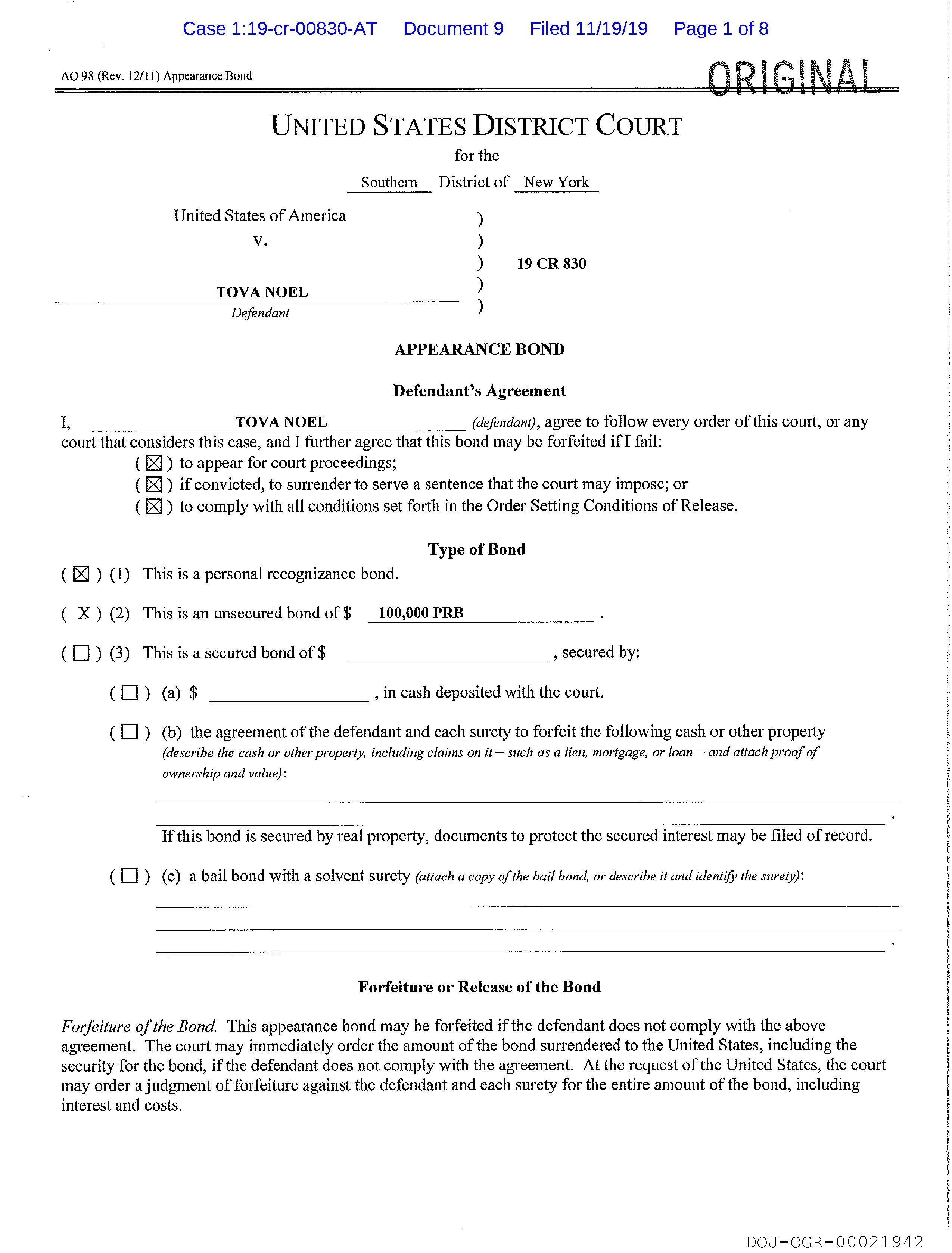The image appears to be a photograph of a printed document from the Federal Bureau of Investigation (FBI). The top part of the document shows the FBI's official seal and logo. The document is partially redacted with black lines covering certain information, including names or other sensitive details that would typically identify individuals involved in an investigation. The visible text includes dates and references to legal proceedings such as "Case Number" and a court citation. There are also instructions for handling the document, indicating it is a restricted piece of evidence related to an ongoing case.