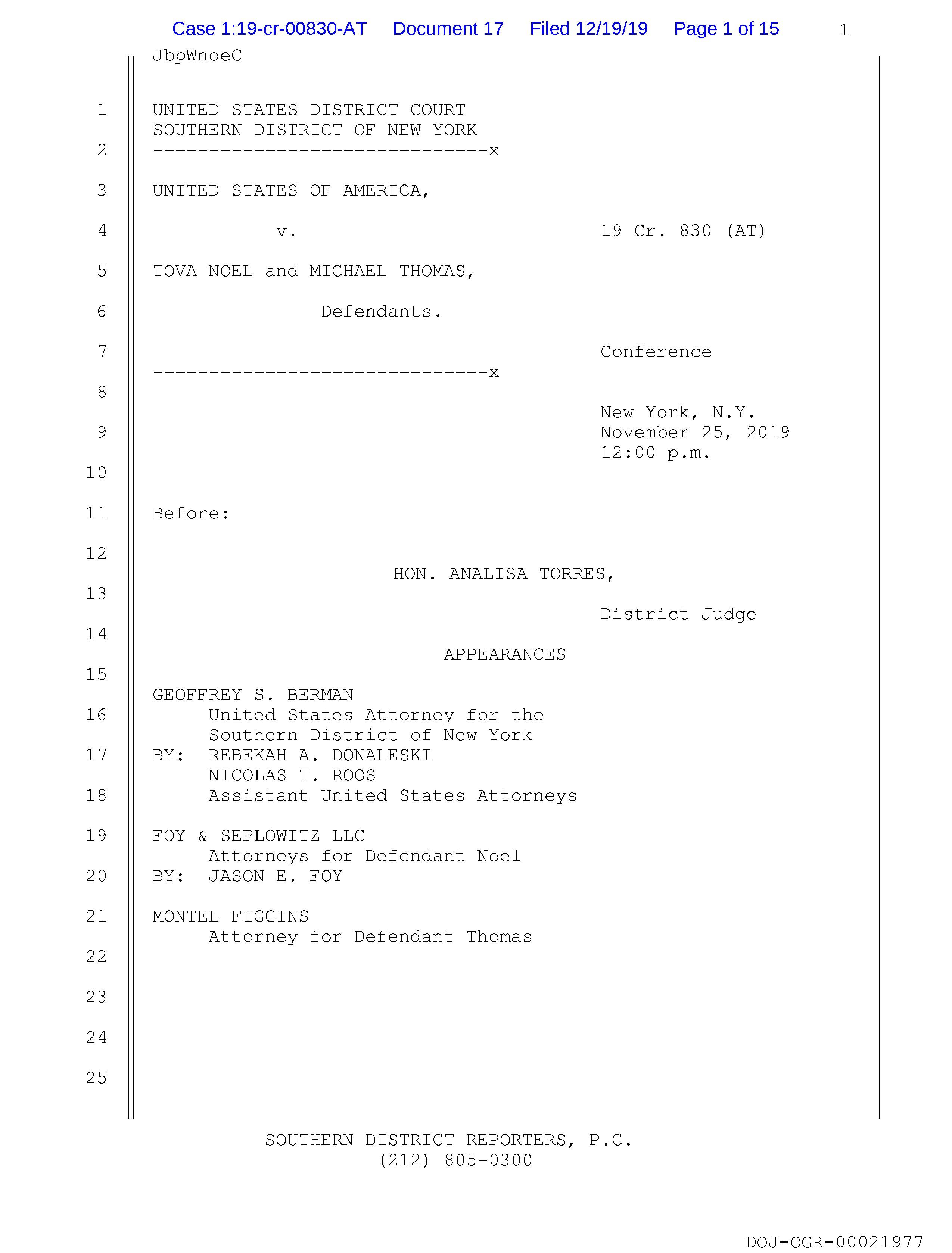 The image displays a scanned document with visible text and some blacked-out sections. The text appears to be from an official letter or report, possibly related to a legal case given the references to "Judge" and "Courtroom." There are also mentions of names that have been redacted. However, without more context, it's not possible to determine the exact nature of the document. The text is printed in black ink on a white background, indicating a standard typewritten format.