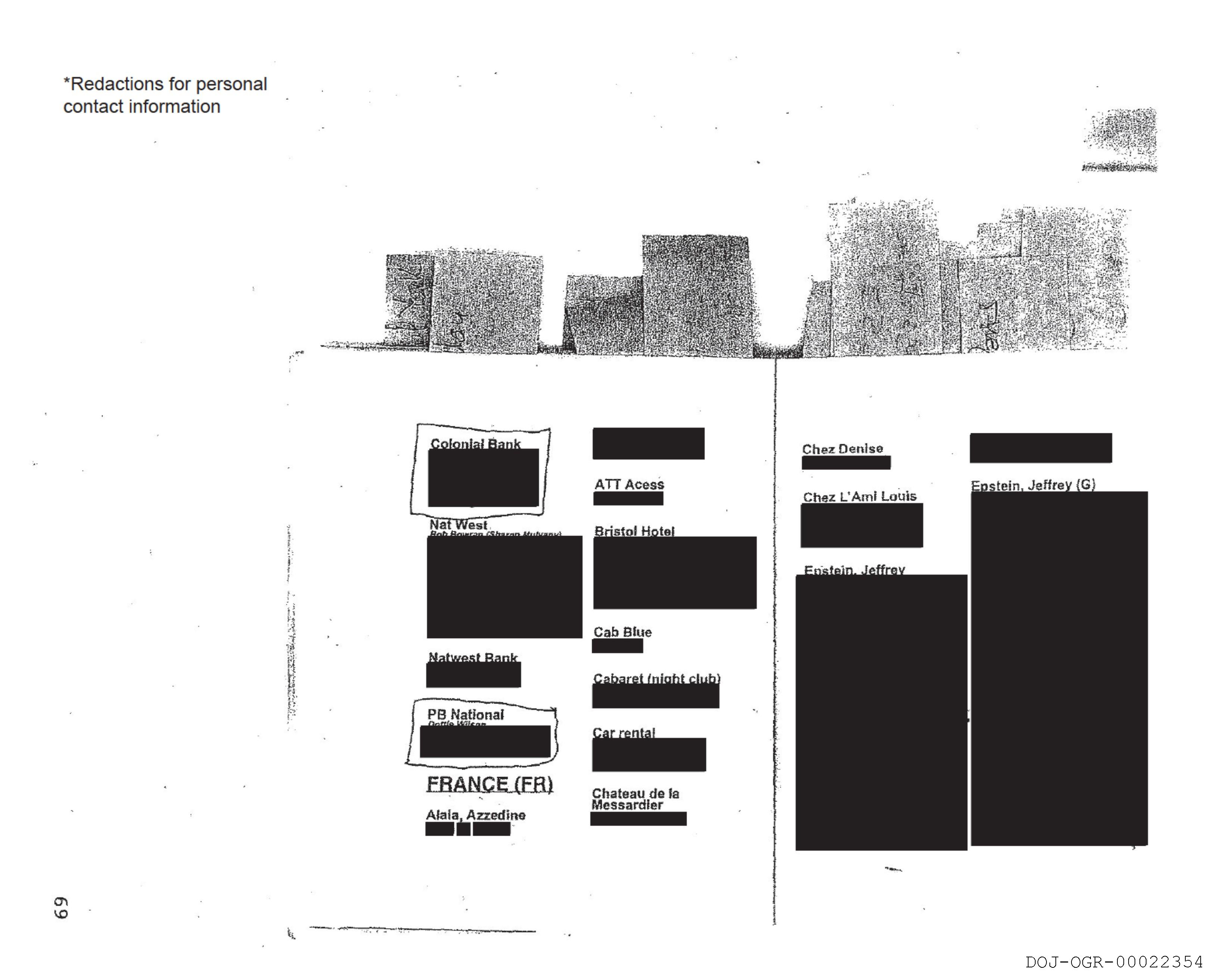 The image appears to be a scanned document with visible text and graphical elements. The document has several sections marked by lines that could indicate headers, footers, or divisions within the content. There is a block of blackened-out information in the middle right section, suggesting that sensitive data has been redacted. Additionally, there's an area at the bottom left corner with text and graphics that seem to be partially obscured or cut off from view. The overall quality of the image suggests it may have been taken with a camera rather than being a direct scan, as indicated by potential distortions and a slight blurriness.