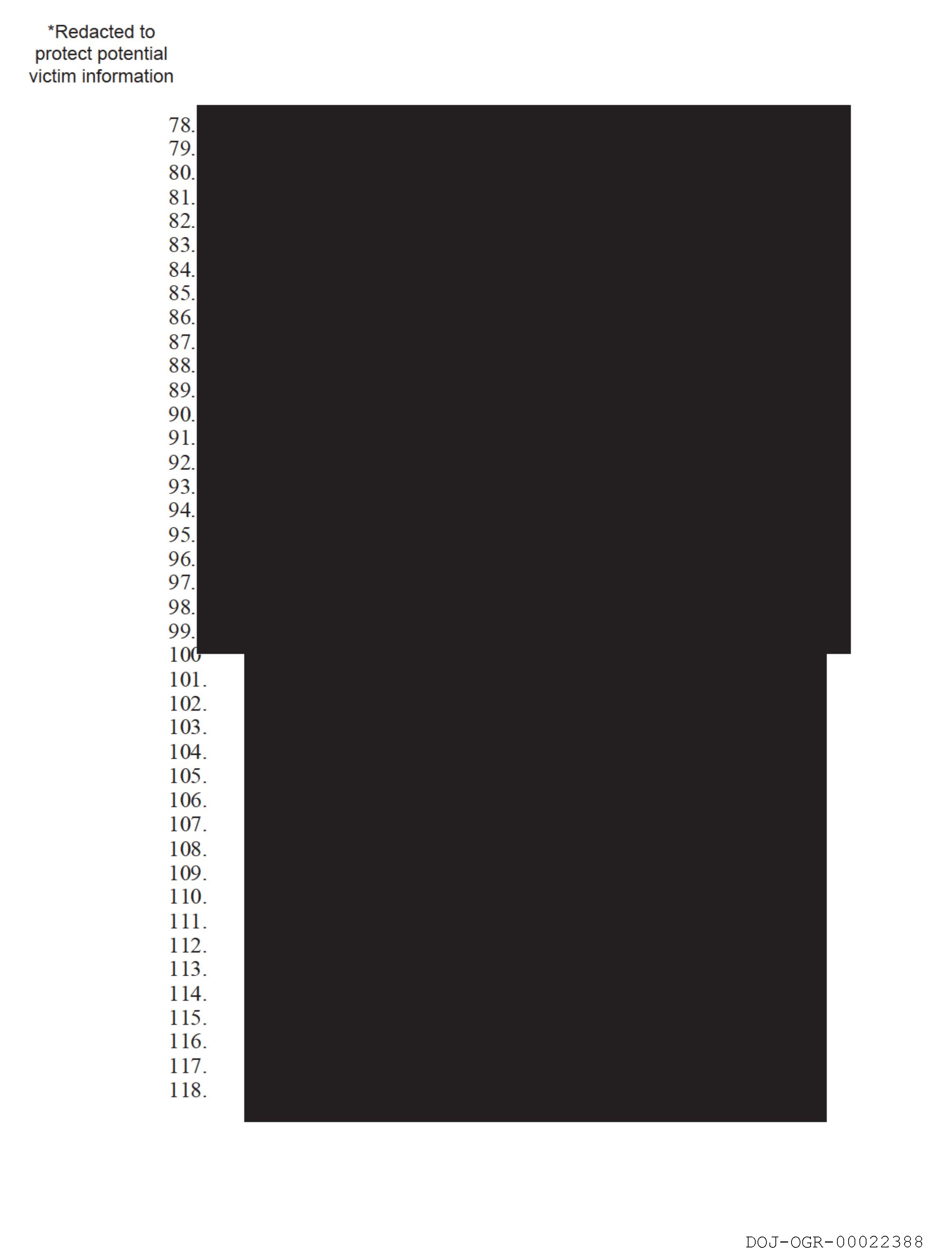 The image appears to be a digital rendering of a printed document with numerous lines of text, some of which are partially obscured by a large black rectangle at the center, indicating that sensitive information has been redacted for privacy reasons. The visible parts of the text suggest it could be related to an official or legal document, possibly containing a list or series of items, but without more context or legibility, it's not possible to provide specific details about the content. The style of the image is straightforward and informational.