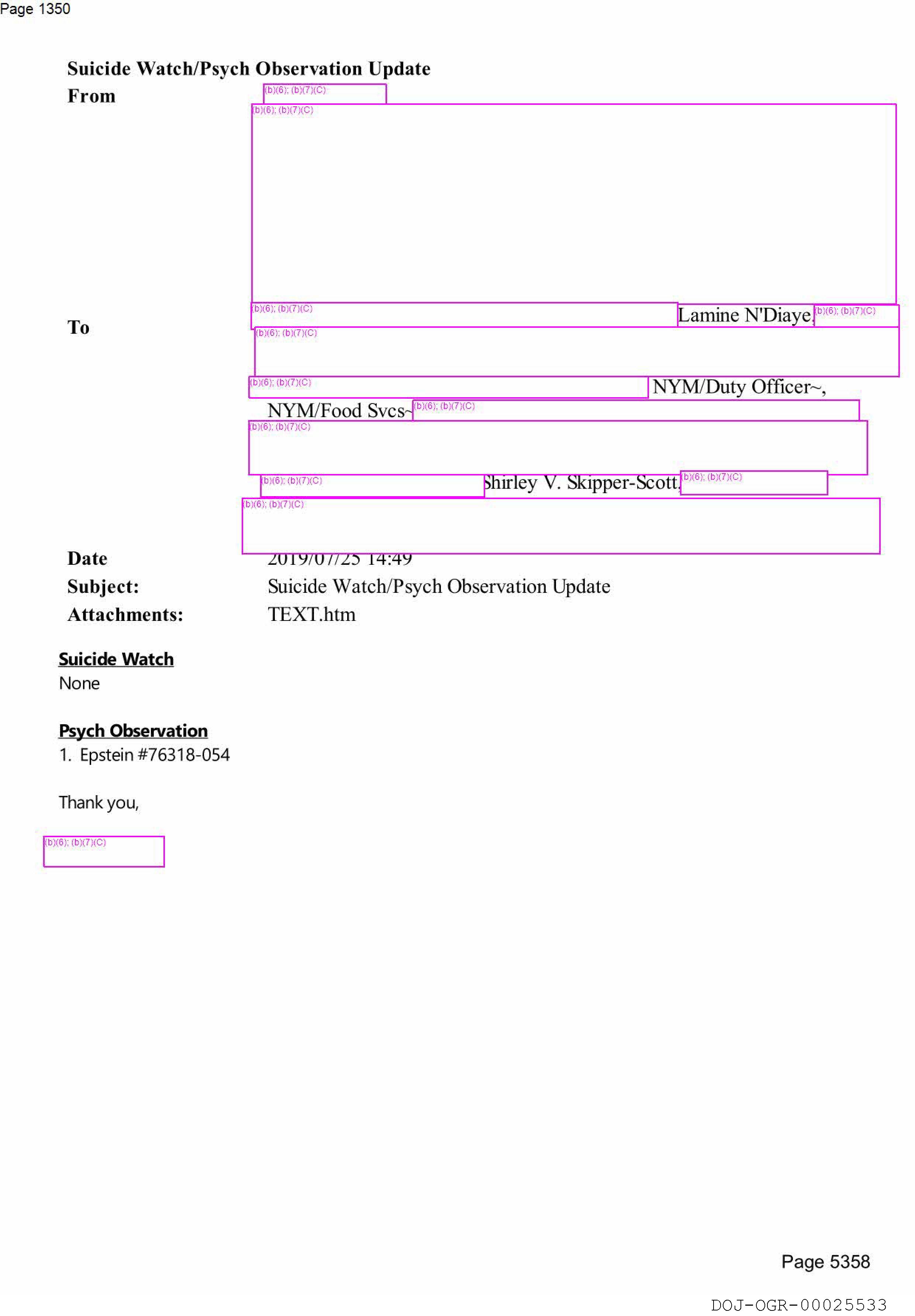 The image displays a page with printed text that has been partially obscured by red lines, indicating sensitive information is being redacted. The content appears to be related to some sort of investigation or report. There's visible text at the top mentioning "Case Report" and further down there are sections like "Officer Observation" where parts have been blacked out. The style of the image suggests it could be a scanned document, possibly from an official or legal source.