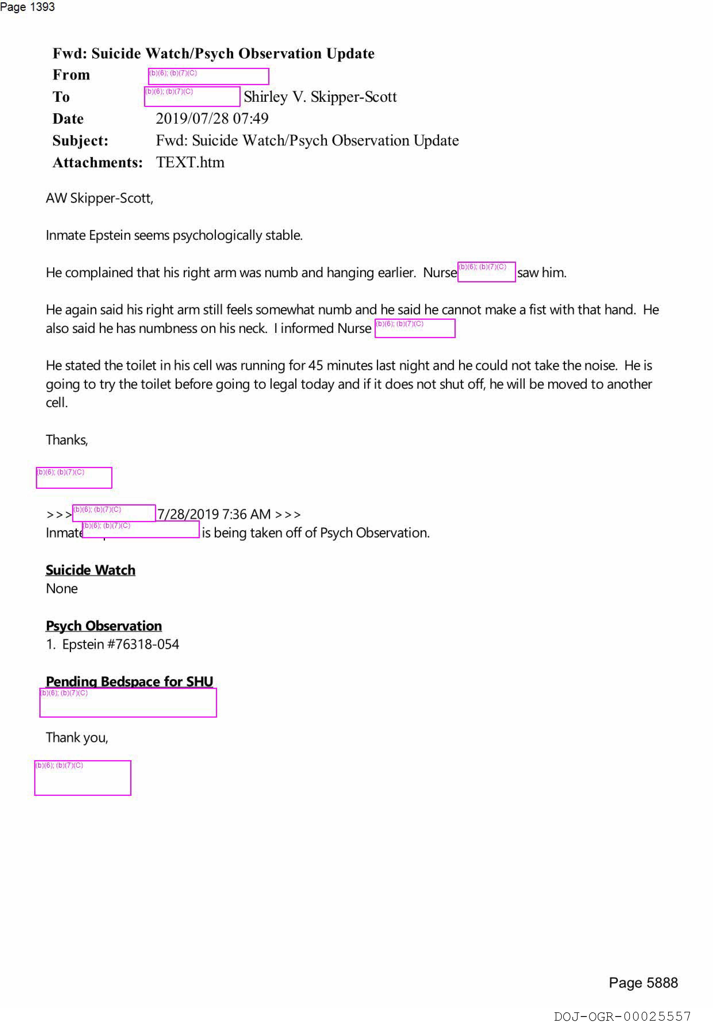The image shows a page of printed text, possibly from an email or a document with various fields highlighted in red, suggesting corrections or important information to be reviewed. There is a heading at the top that reads "Possible WW Psych Observation Updates" followed by bullet points and more text underneath that includes phone numbers and names. The bottom right corner has two sections of red highlights pointing to specific areas within the document with no visible text indicating what they are meant to highlight. The overall style of the image suggests a digital or printed work document being reviewed for accuracy or action items.