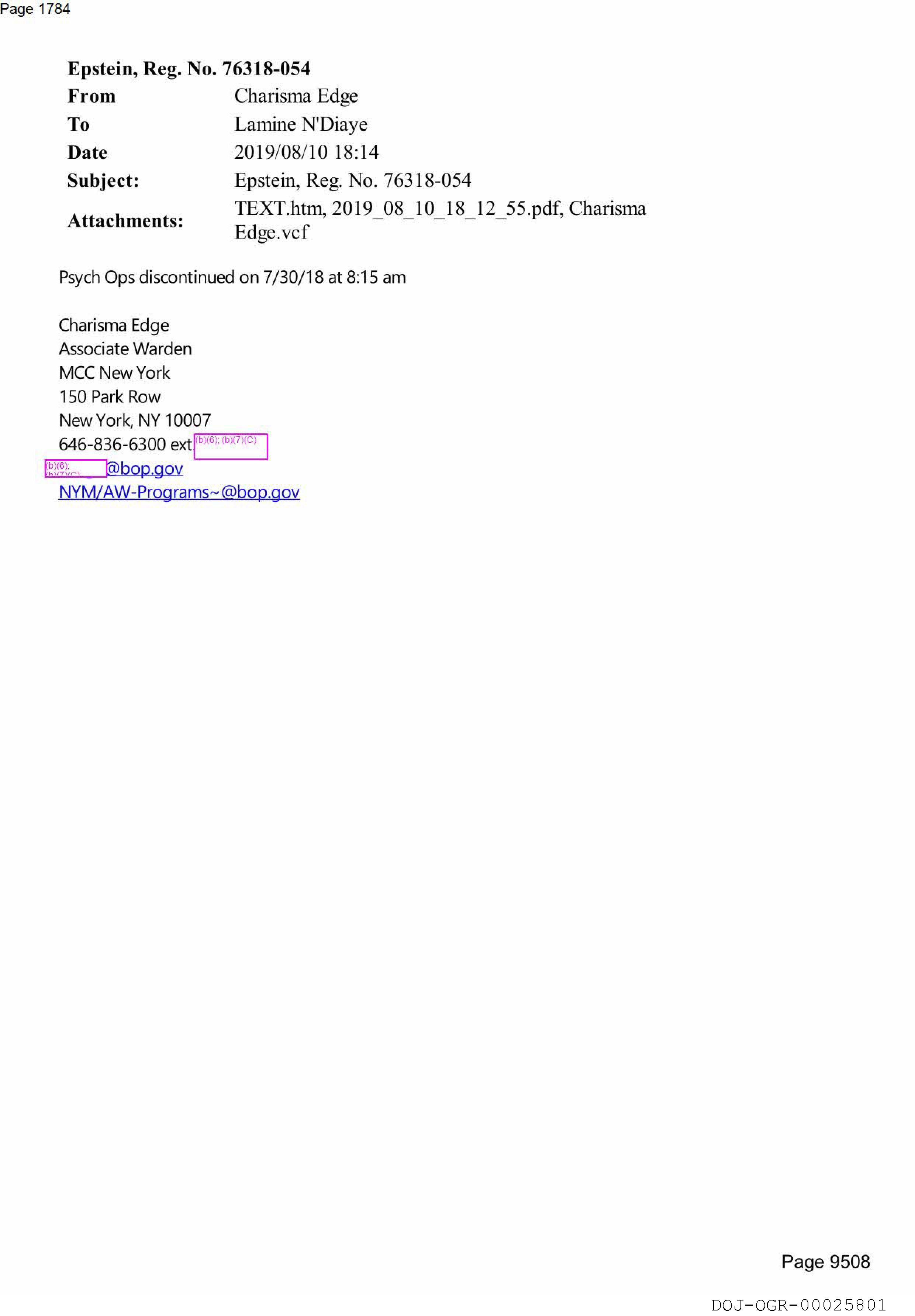 The image displays a scanned document with visible text and some blacked-out sections. The text appears to be from an official letter or report, possibly related to a legal case given the references to "Judge" and "Courtroom." There are also mentions of names that have been redacted. However, without more context, it's not possible to determine the exact nature of the document. The text is printed in black ink on a white background, indicating a standard typewritten format.