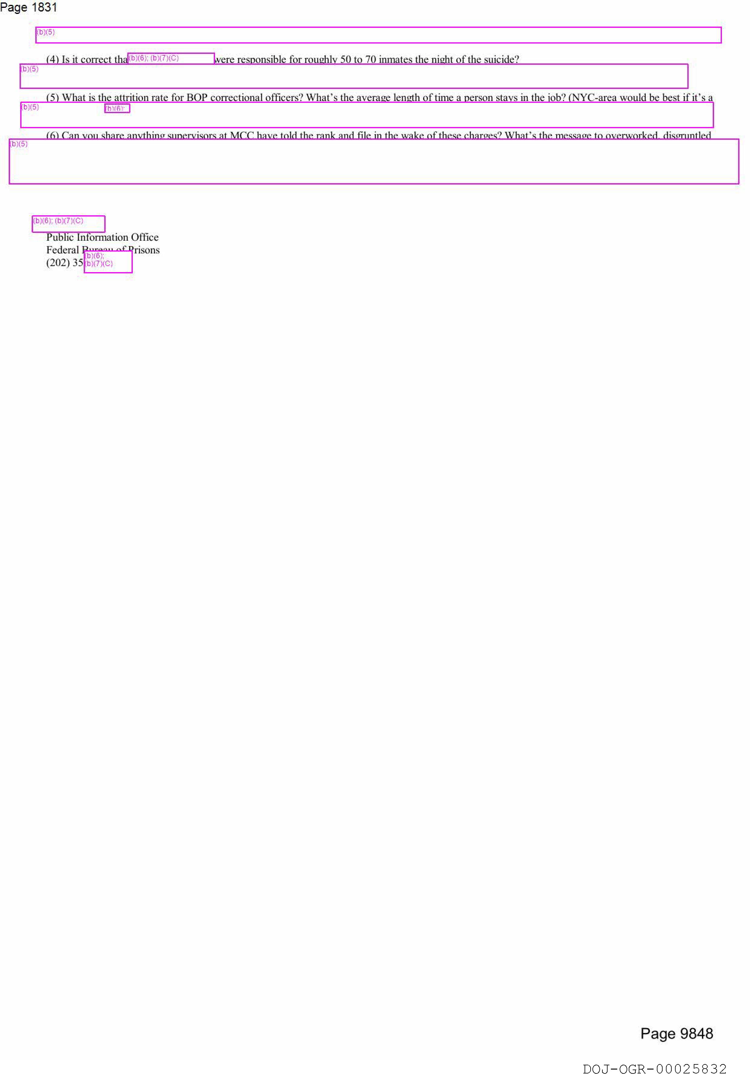 The image displays a scanned document with visible text and some blacked-out sections. The text appears to be from an official letter or report, possibly related to a legal case given the references to "Judge" and "Courtroom." There are also mentions of names that have been redacted. However, without more context, it's not possible to determine the exact nature of the document. The text is printed in black ink on a white background, indicating a standard typewritten format.