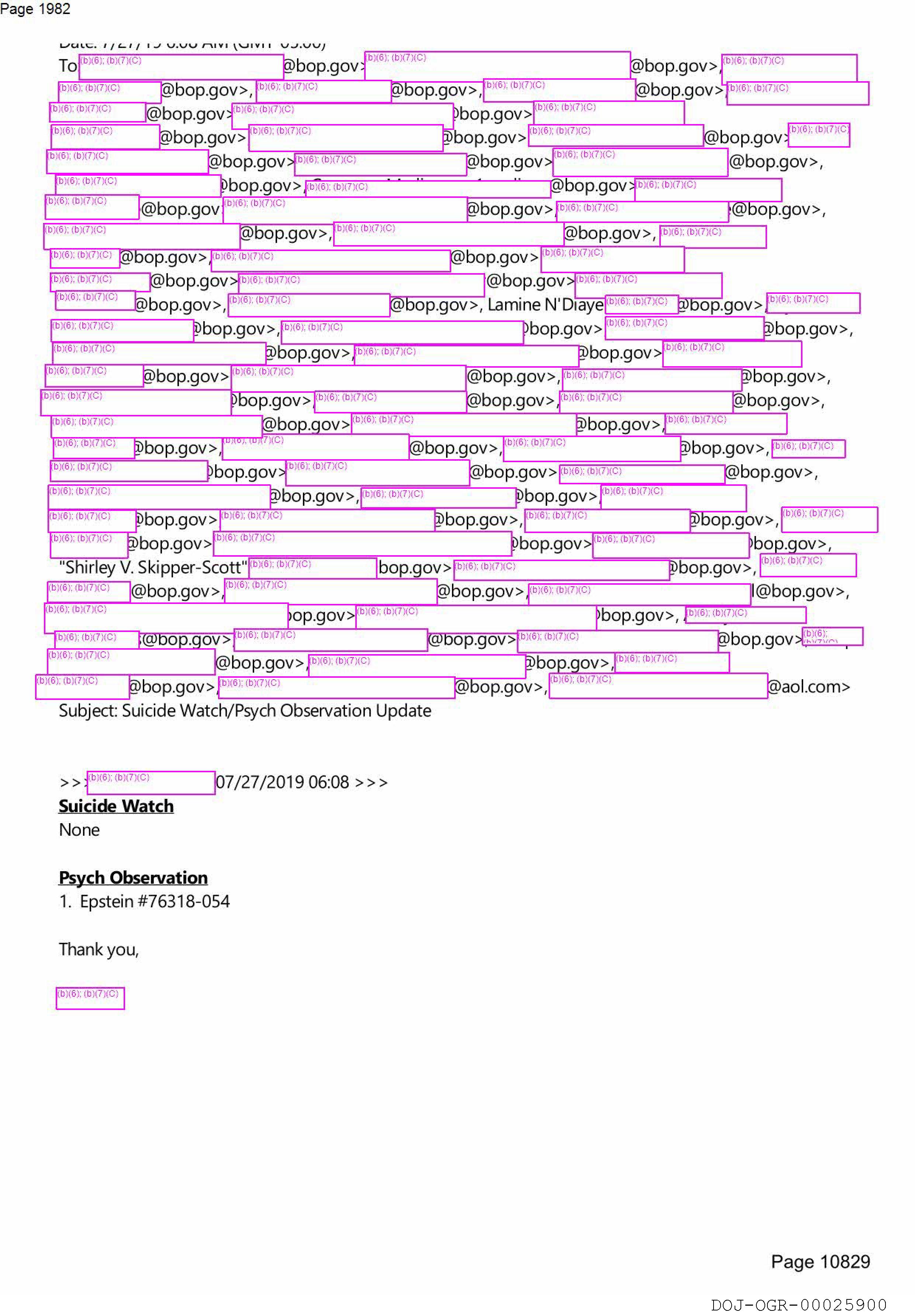 The image shows a printed document with multiple lines of text that appears to be a list or data table.
