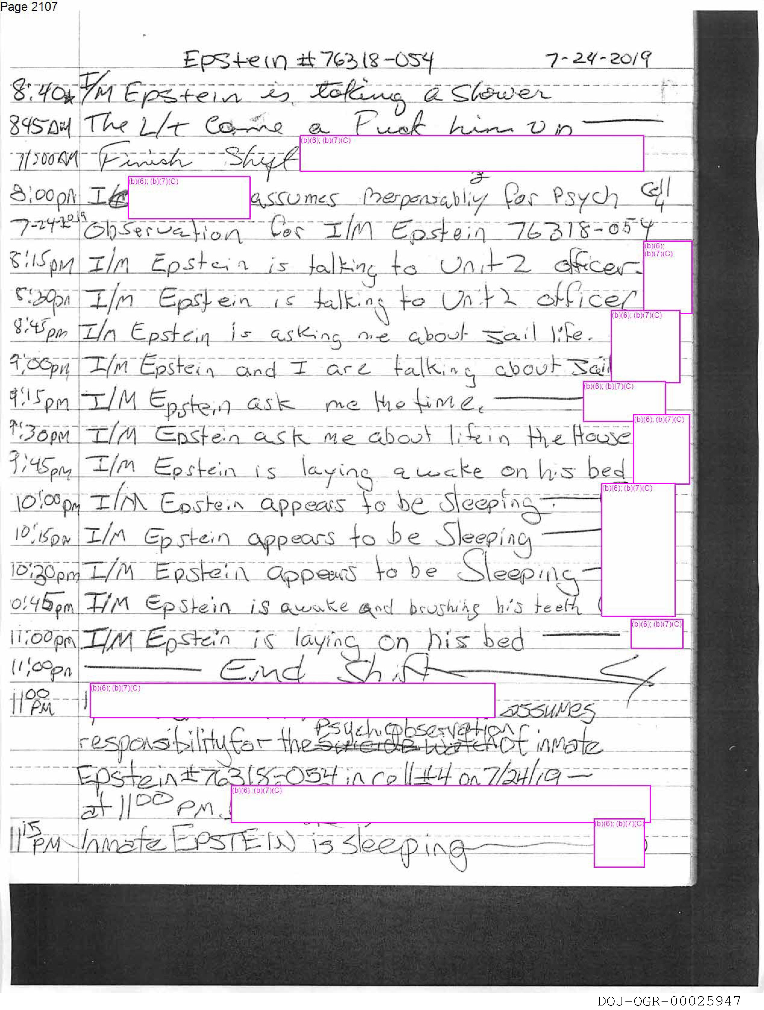 The image shows a piece of paper with handwritten notes. The writing is somewhat difficult to read due to the angle and quality of the photograph. There are lines drawn on the paper in different colors; pink, purple, and blue. Some words that can be discerned include "email", "call", and what appears to be a series of names or tasks followed by specific times, possibly indicating scheduled events or appointments. The overall style suggests it might be someone's personal reminder list or a daily schedule.