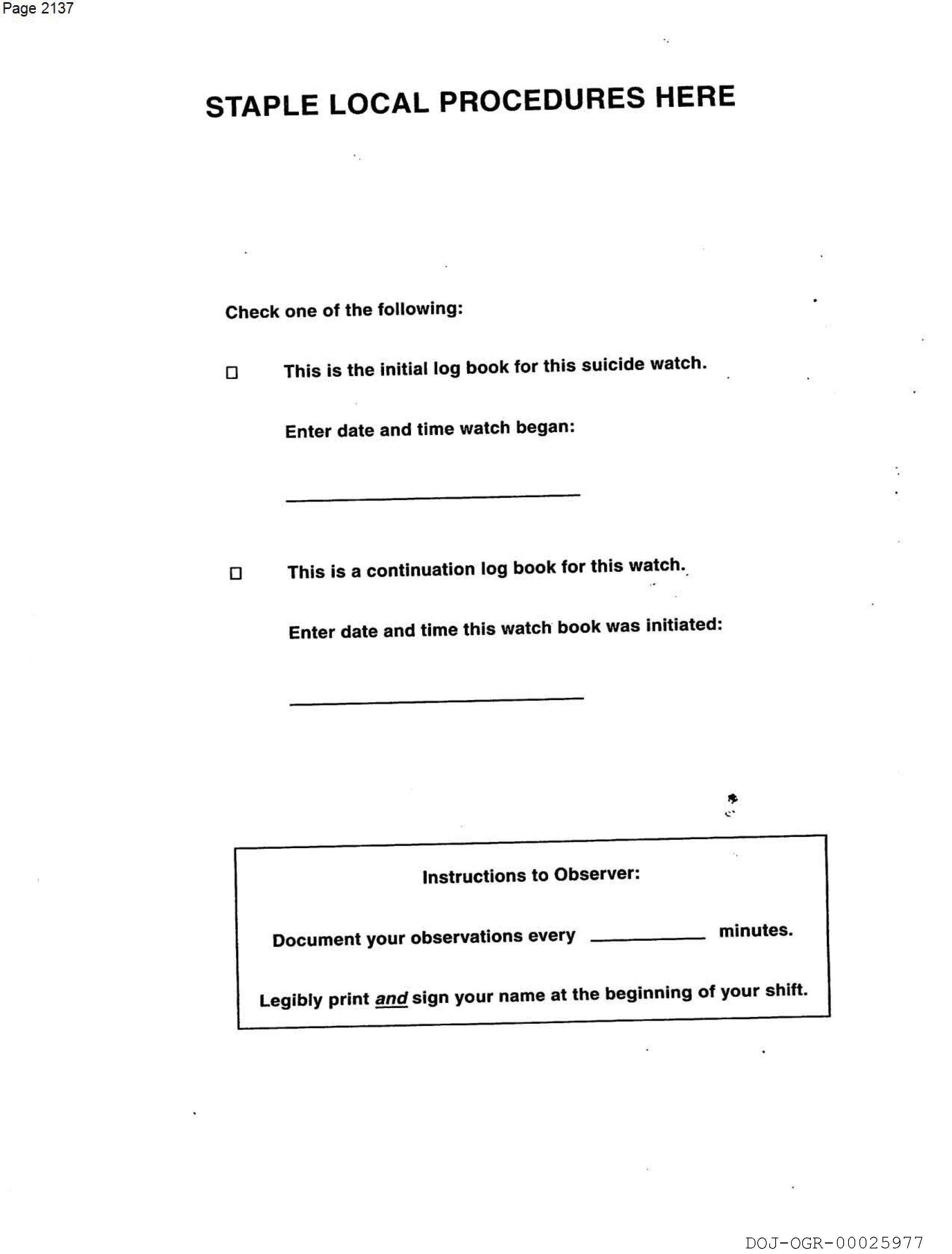 The image shows a piece of paper with printed text that appears to be an instruction list. At the top, there is bold text reading "STEP LOCAL PROCEDURES HERE." Below this heading are two checkboxes: one is unchecked and labeled "Checking in one box only available items," while the other is also unchecked and reads "Enter date and time which has been used." Beneath these instructions is a section titled "Documentation," with a space provided for writing under the heading "Describe your procedures here." The text is presented in black ink against a white background, and there's no visible imagery or people on the paper itself.