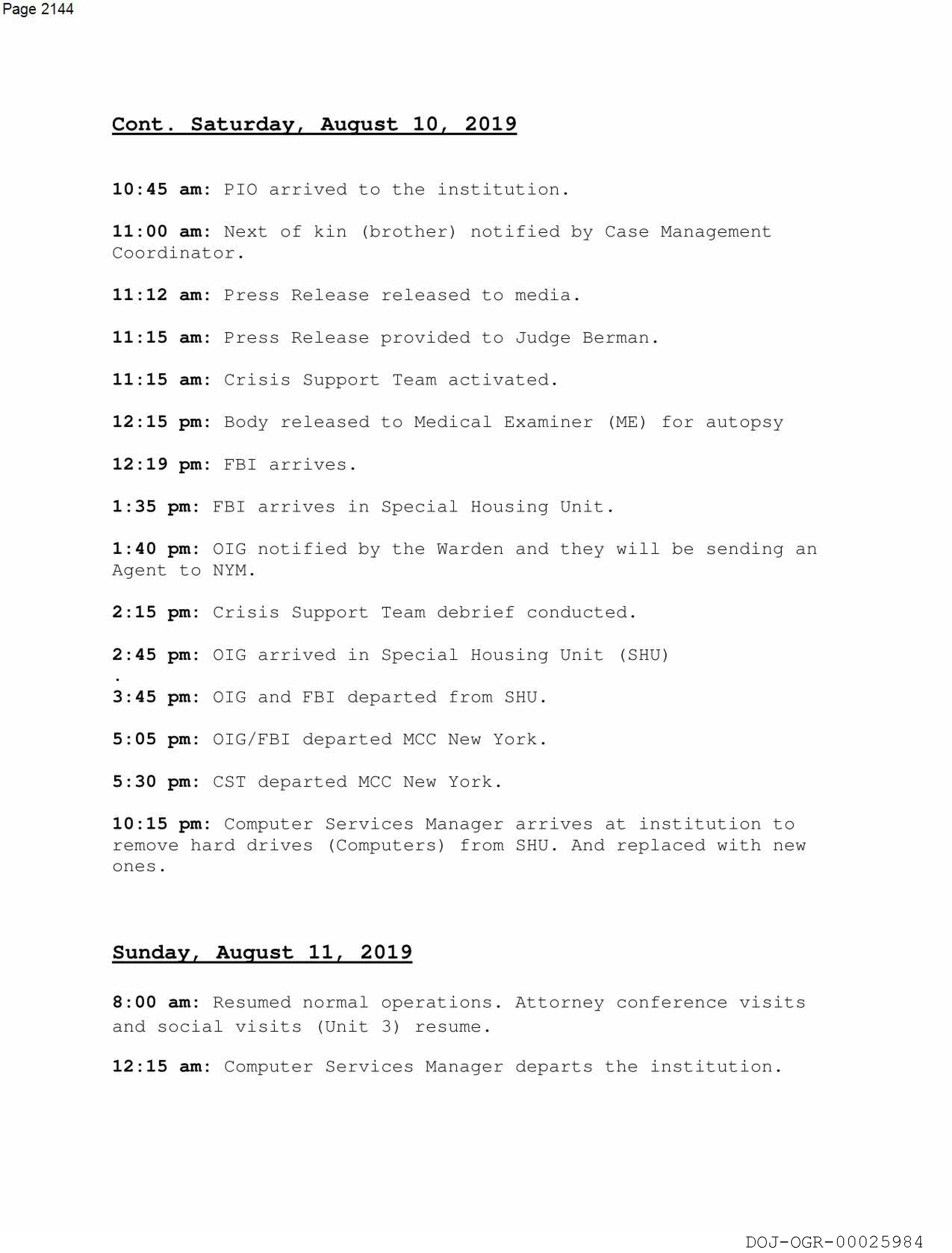 The image displays a scanned document with visible text and some blacked-out sections. The text appears to be from an official letter or report, possibly related to a legal case given the references to "Judge" and "Courtroom." There are also mentions of names that have been redacted. However, without more context, it's not possible to determine the exact nature of the document. The text is printed in black ink on a white background, indicating a standard typewritten format.