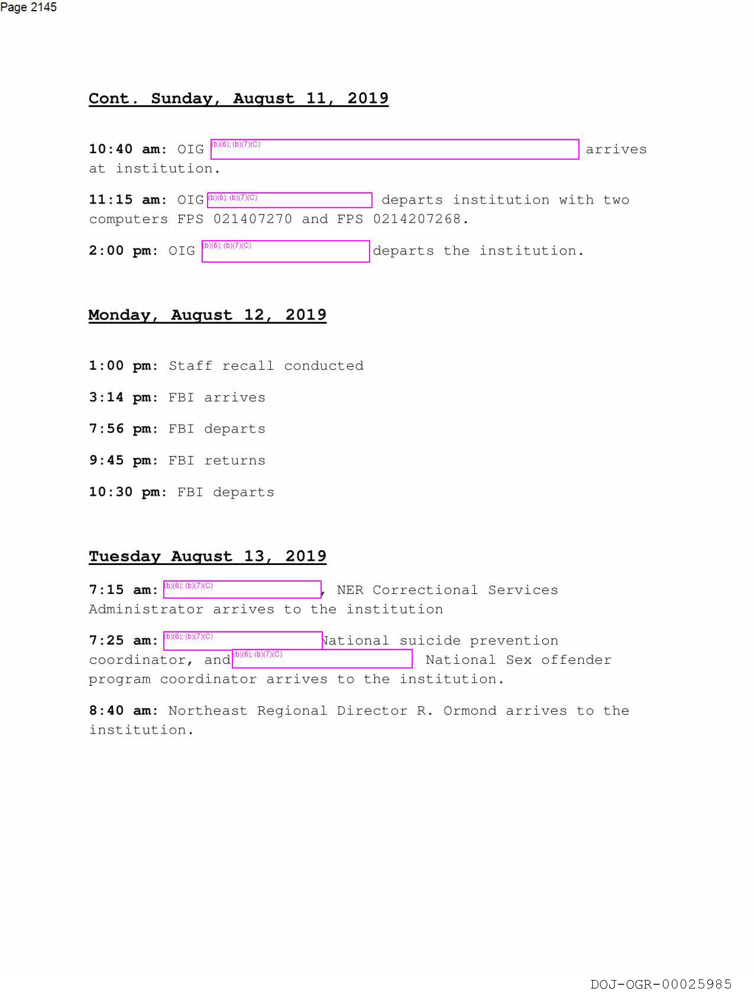 The image shows a document with the title "Suicide Timeline: Responding to a Suicide" at the top. It is a typed text on a paper background that appears to be from an official or professional source, possibly related to law enforcement or mental health services, as indicated by the context and style of the document. There's a list with dates ranging from "Friday August 10, 2018" to "Monday August 13, 2018," each followed by specific times like "6:00 PM" and details such as the name "Jeffrey Edward" alongside phone numbers. The document is marked with a red line through it, which often indicates disapproval or cancellation of an event or plan.