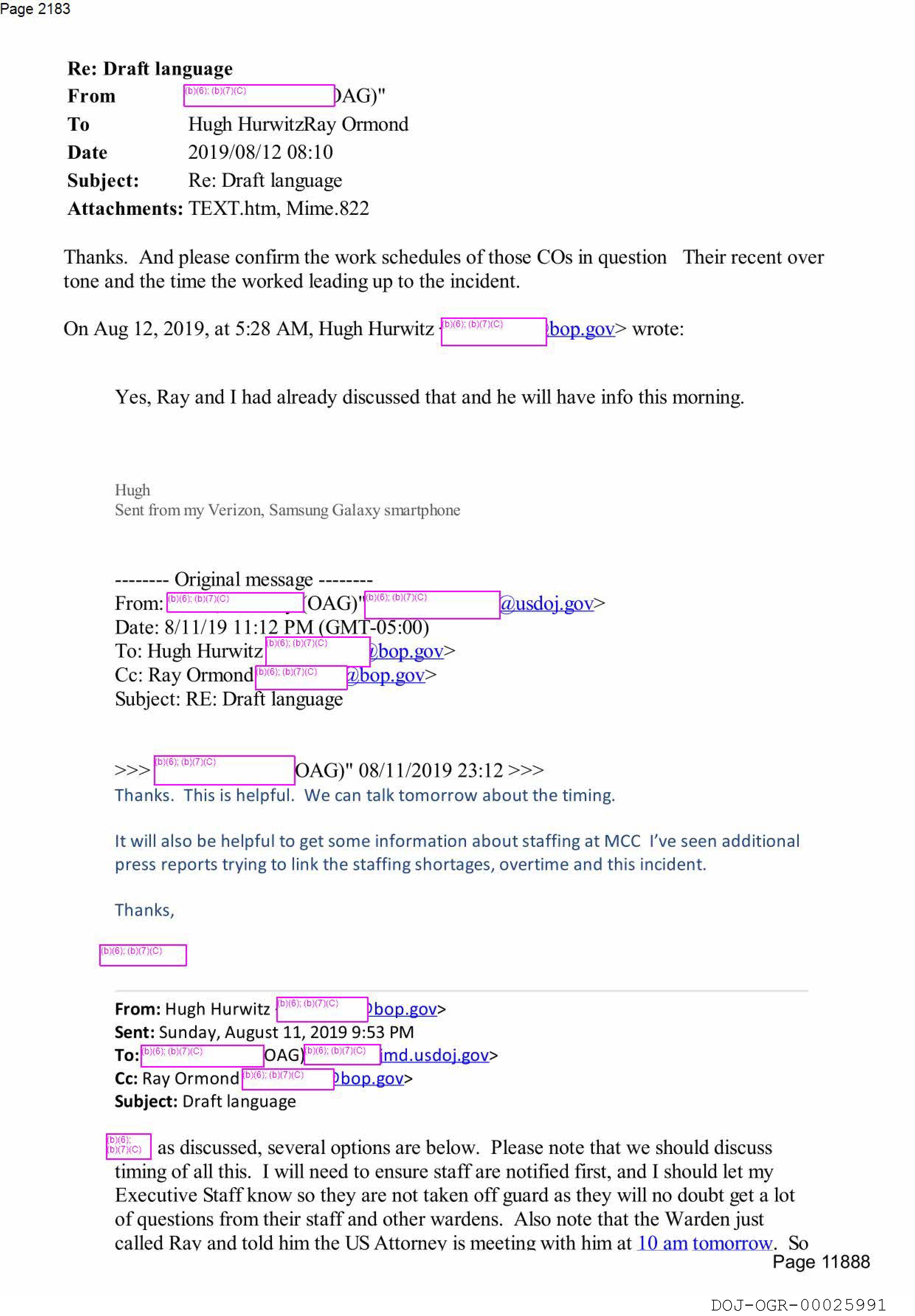 The image is a screenshot of an email with various elements redacted. It contains visible text such as the subject line, parts of the sender's and recipient's names, and some sentences from the body of the message. There are also placeholders where information has been redacted out with lines or blocks, indicating sensitive content that is not meant to be shared. The style of the screenshot is typical for a digital communication, showing an email interface with standard icons and layout associated with email platforms.