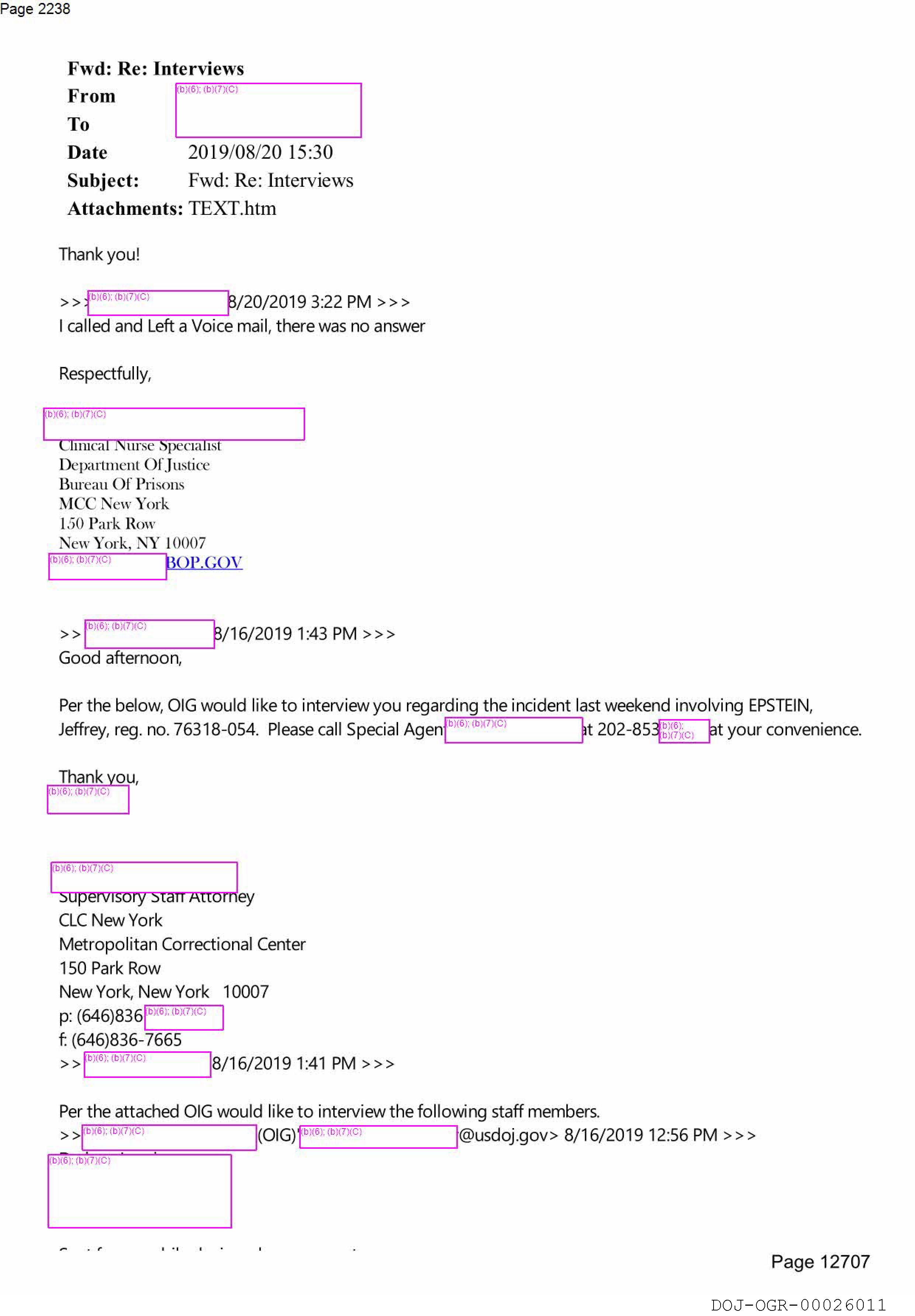 The image is a scanned copy of an email with various elements redacted using pink scribbles, presumably to protect sensitive information.