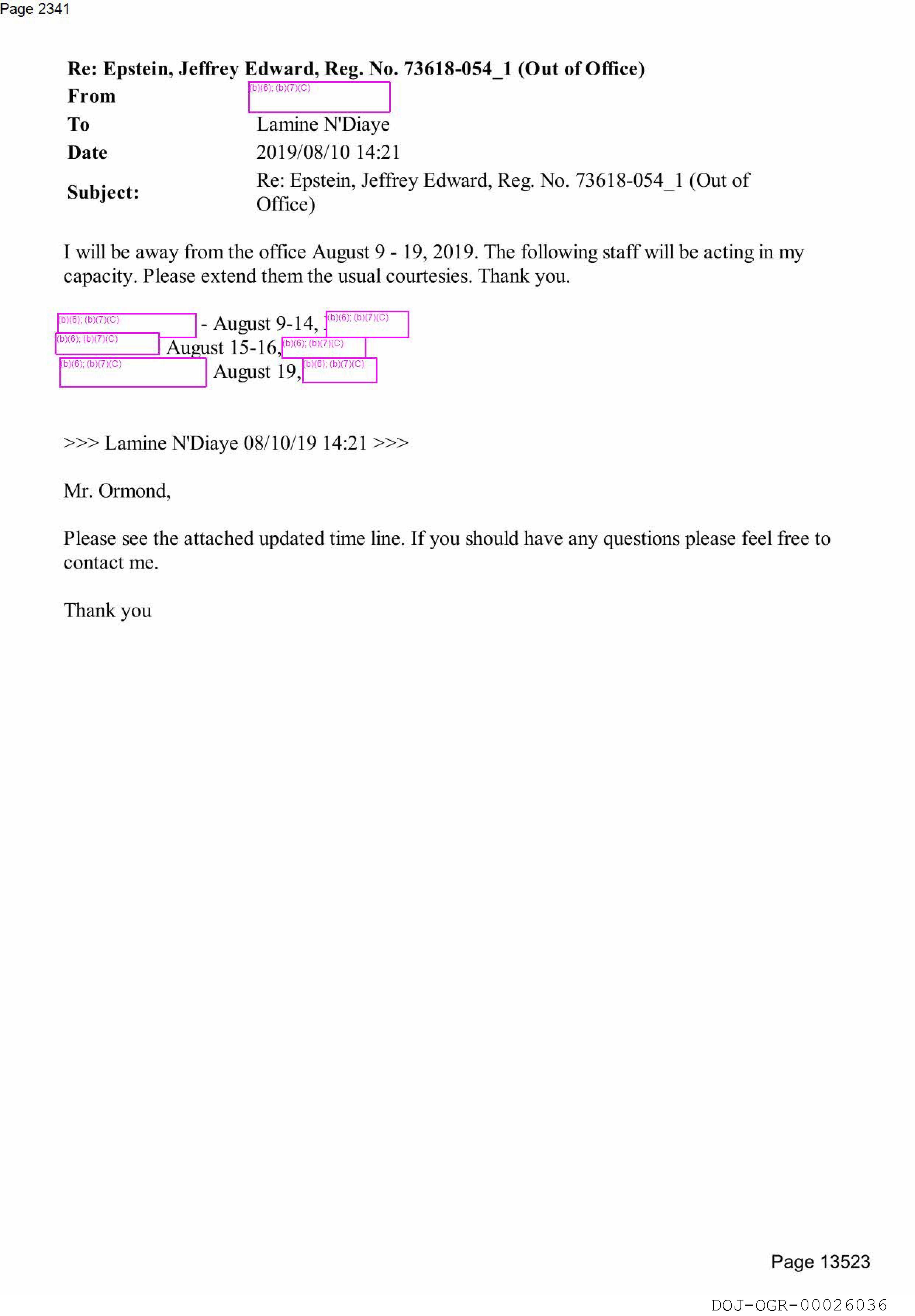 The image appears to be a photograph of an email printed on paper with a gray overlay.