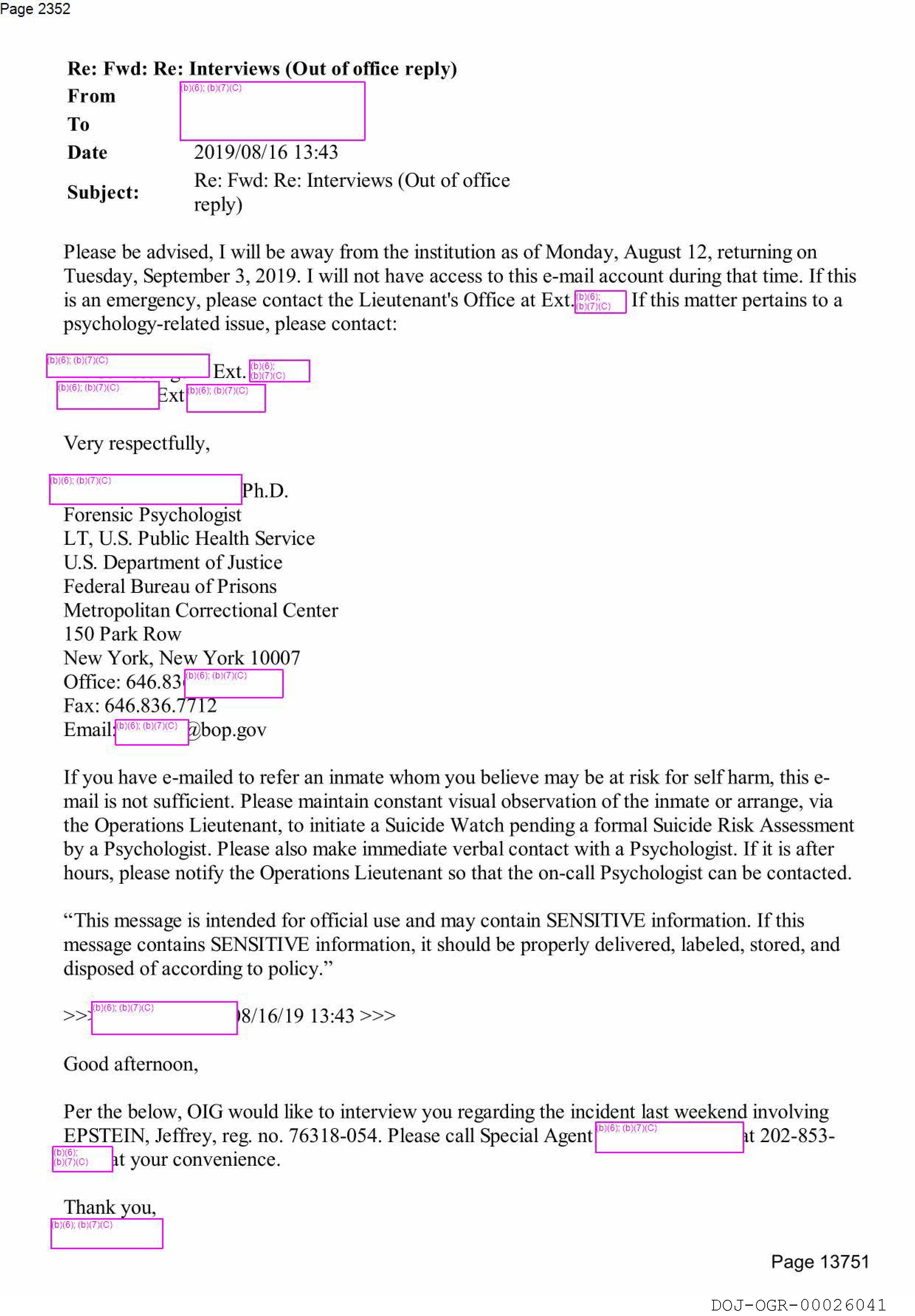 The image appears to be a photograph of a document or piece of paper with printed text. The text is partially obscured and seems to contain personal information such as names, addresses, phone numbers, and possibly dates related to legal proceedings or medical treatment. There are redacted sections where important details have been intentionally hidden by blacking out the text with a marker. The overall appearance suggests that this could be an official document intended for private communication or restricted access within a professional context.