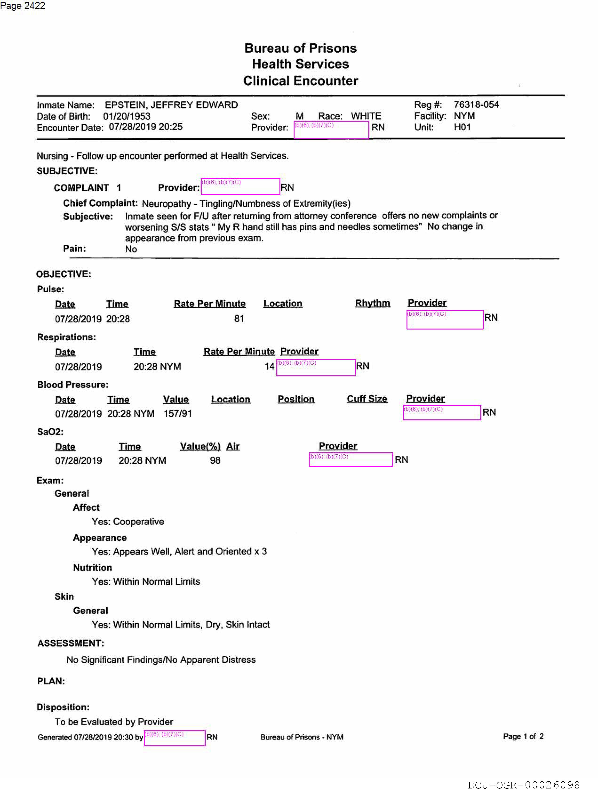 The image shows a form titled "Department of Corrections Clinical Encounter".