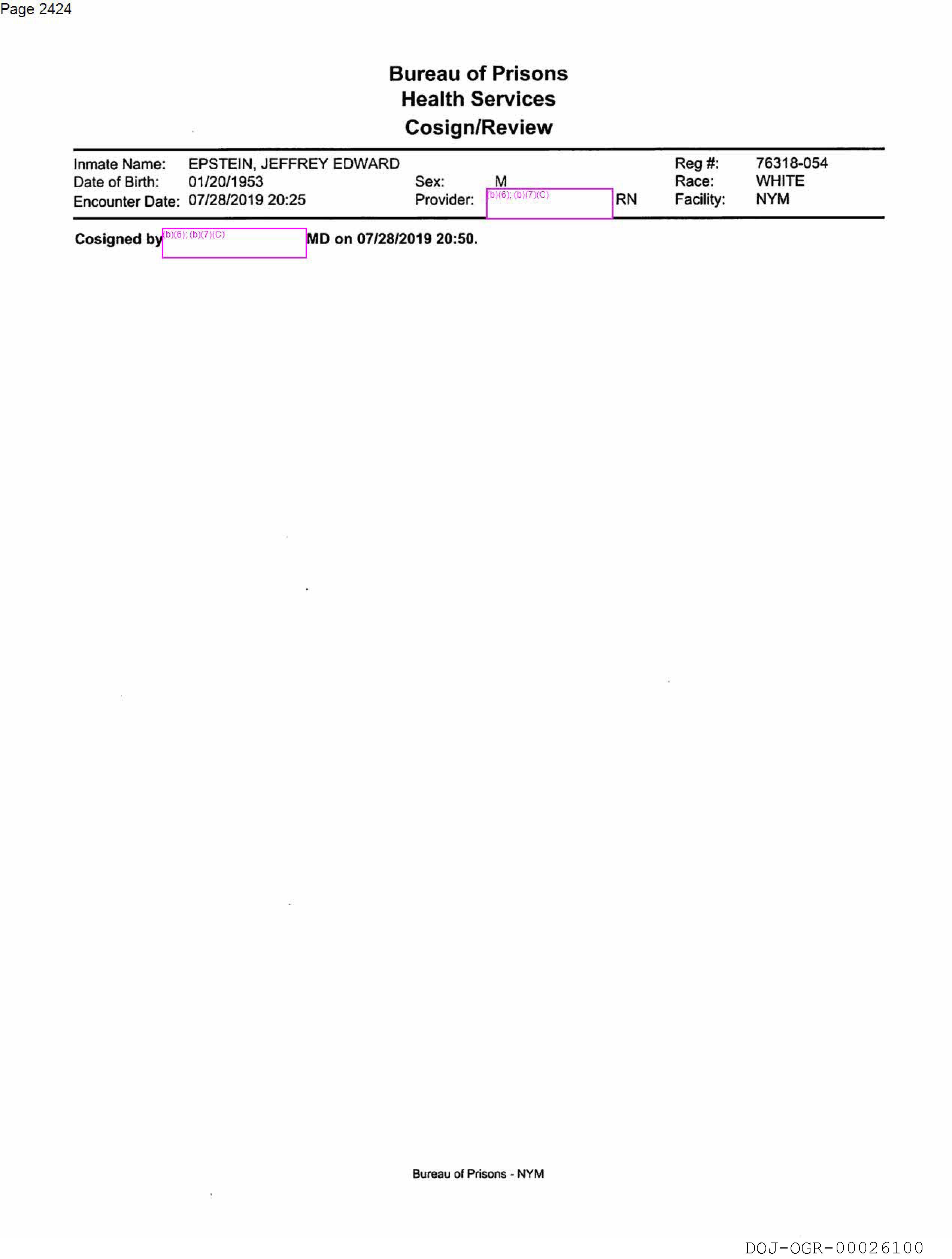 The image shows a document with the header "Bureau of Prisons" at the top.
