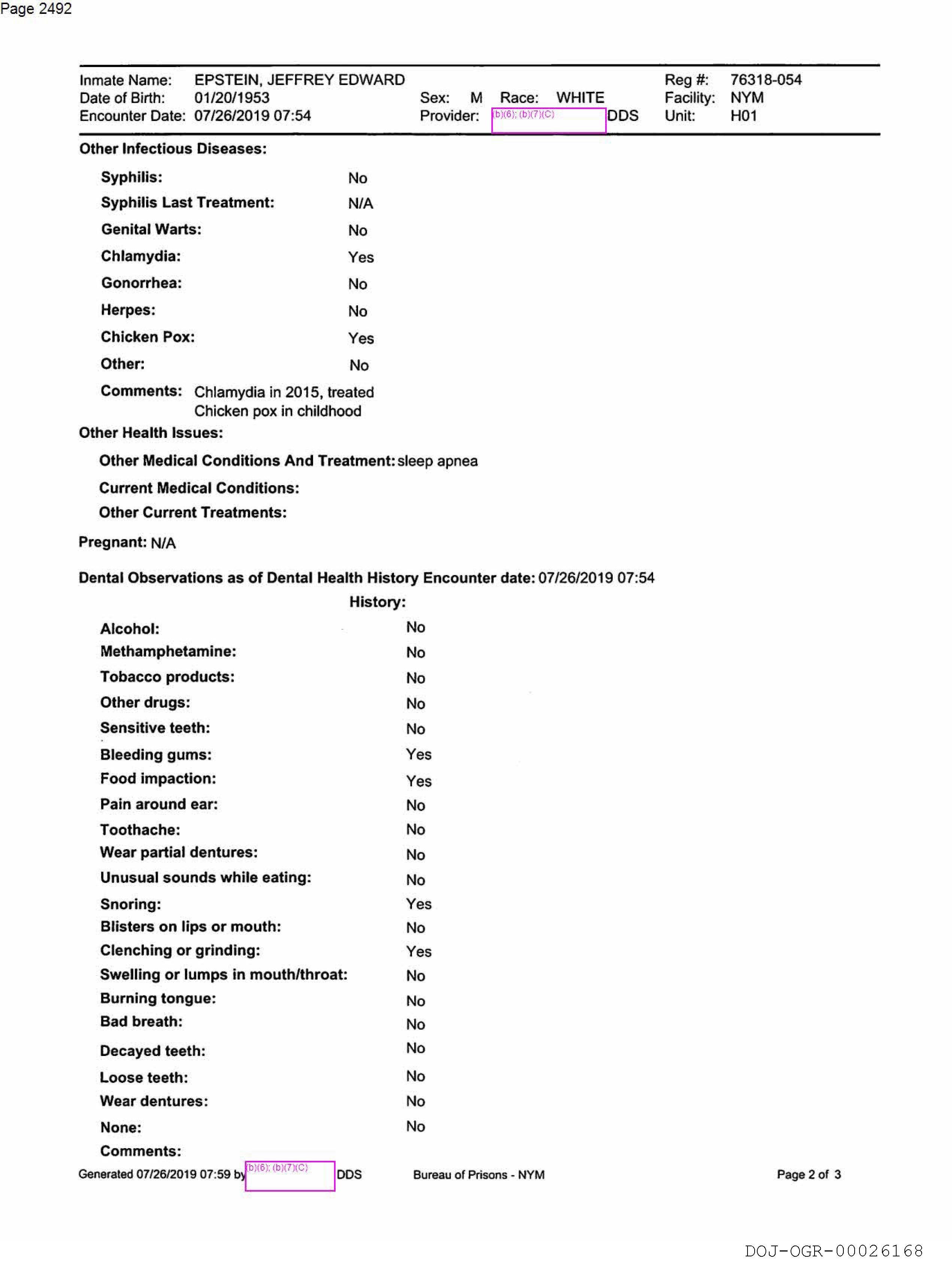 The image is a digital representation of a document with fields of information likely pertaining to an individual's health history for medical purposes.