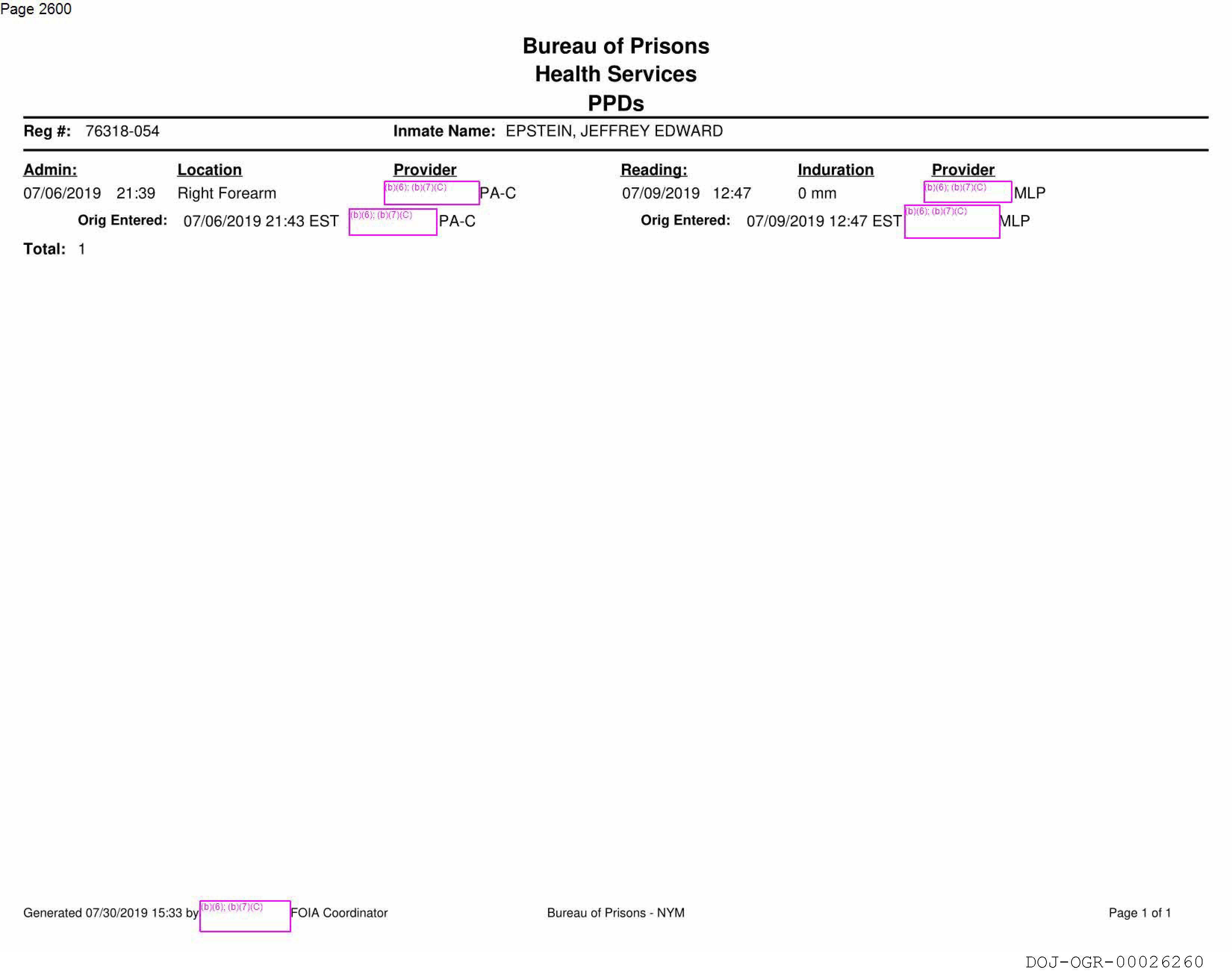 The image appears to be a photograph of a printed document from the Federal Bureau of Investigation (FBI). The top part of the document shows the FBI's official seal and logo. The document is partially redacted with black lines covering certain information, including names or other sensitive details that would typically identify individuals involved in an investigation. The visible text includes dates and references to legal proceedings such as "Case Number" and a court citation. There are also instructions for handling the document, indicating it is a restricted piece of evidence related to an ongoing case.