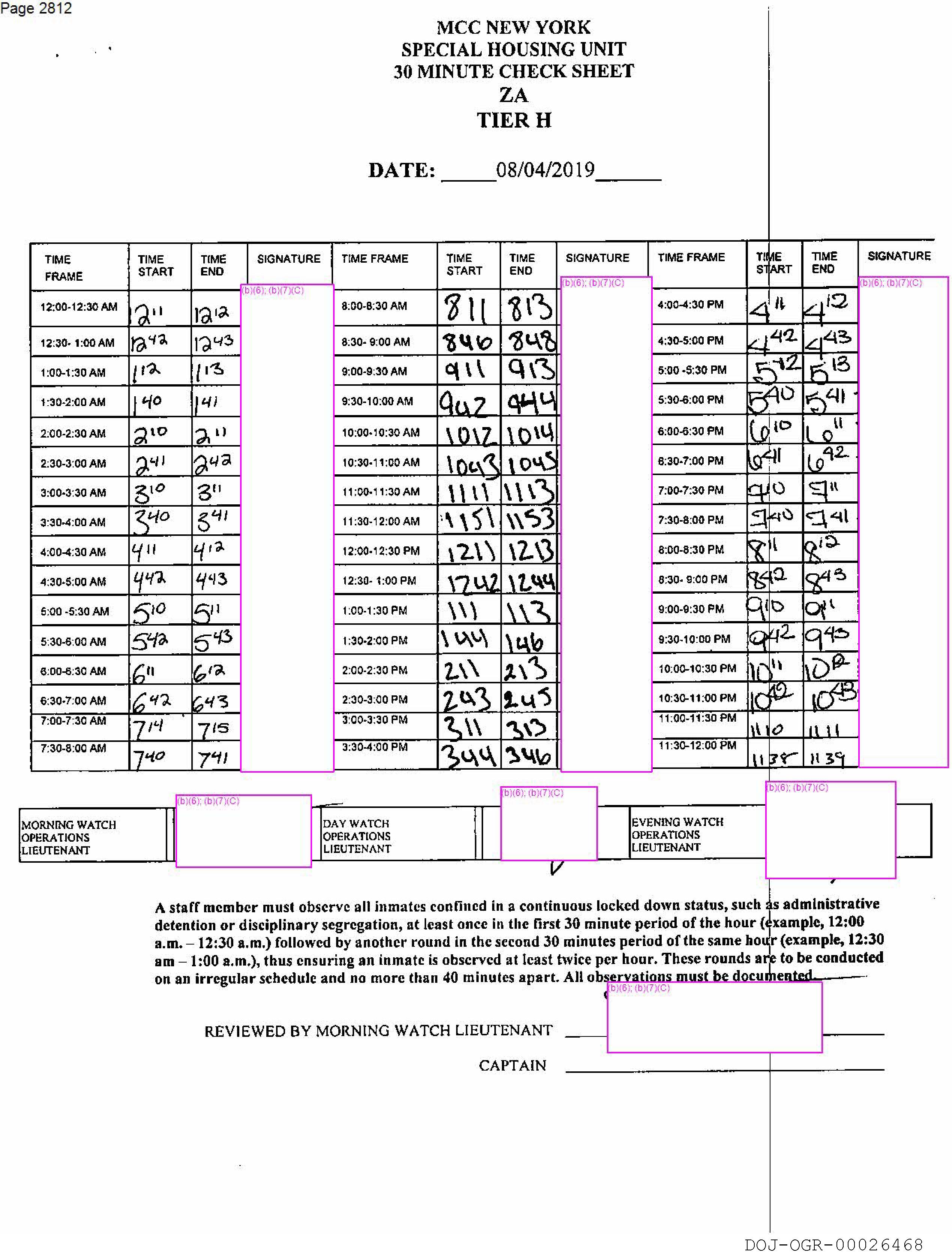 The image displays a scanned document with visible text and some blacked-out sections. The text appears to be from an official letter or report, possibly related to a legal case given the references to "Judge" and "Courtroom." There are also mentions of names that have been redacted. However, without more context, it's not possible to determine the exact nature of the document. The text is printed in black ink on a white background, indicating a standard typewritten format.