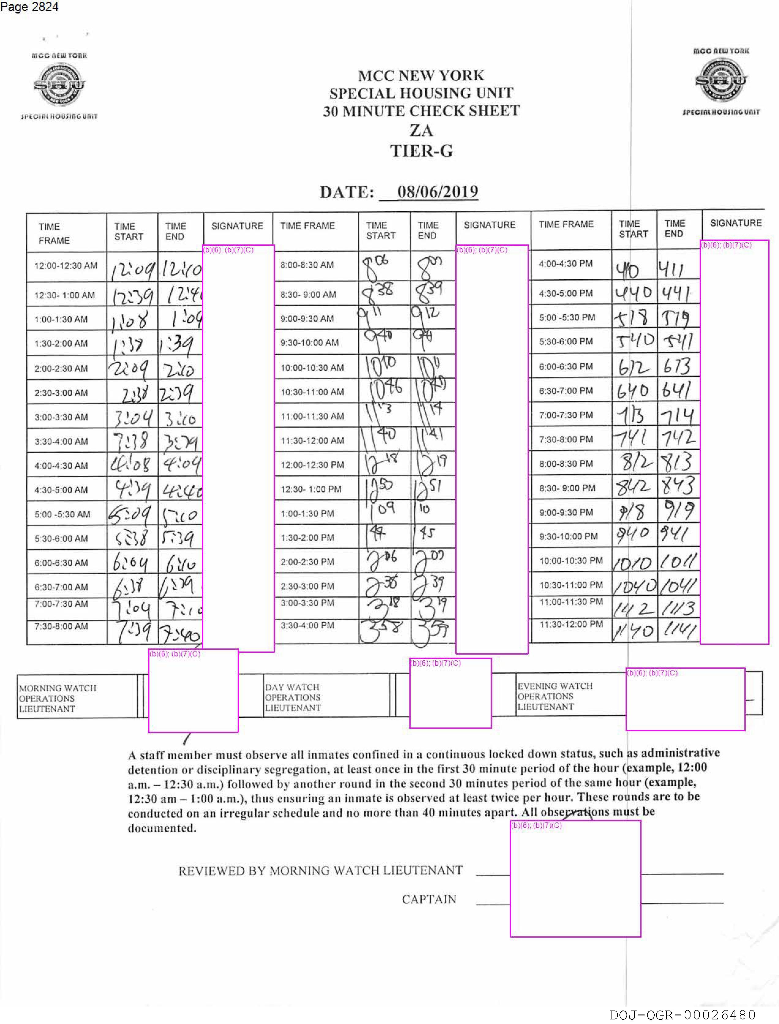 The image shows a printed document with the title "New York State Department of Corrections and Community Supervision" at the top.