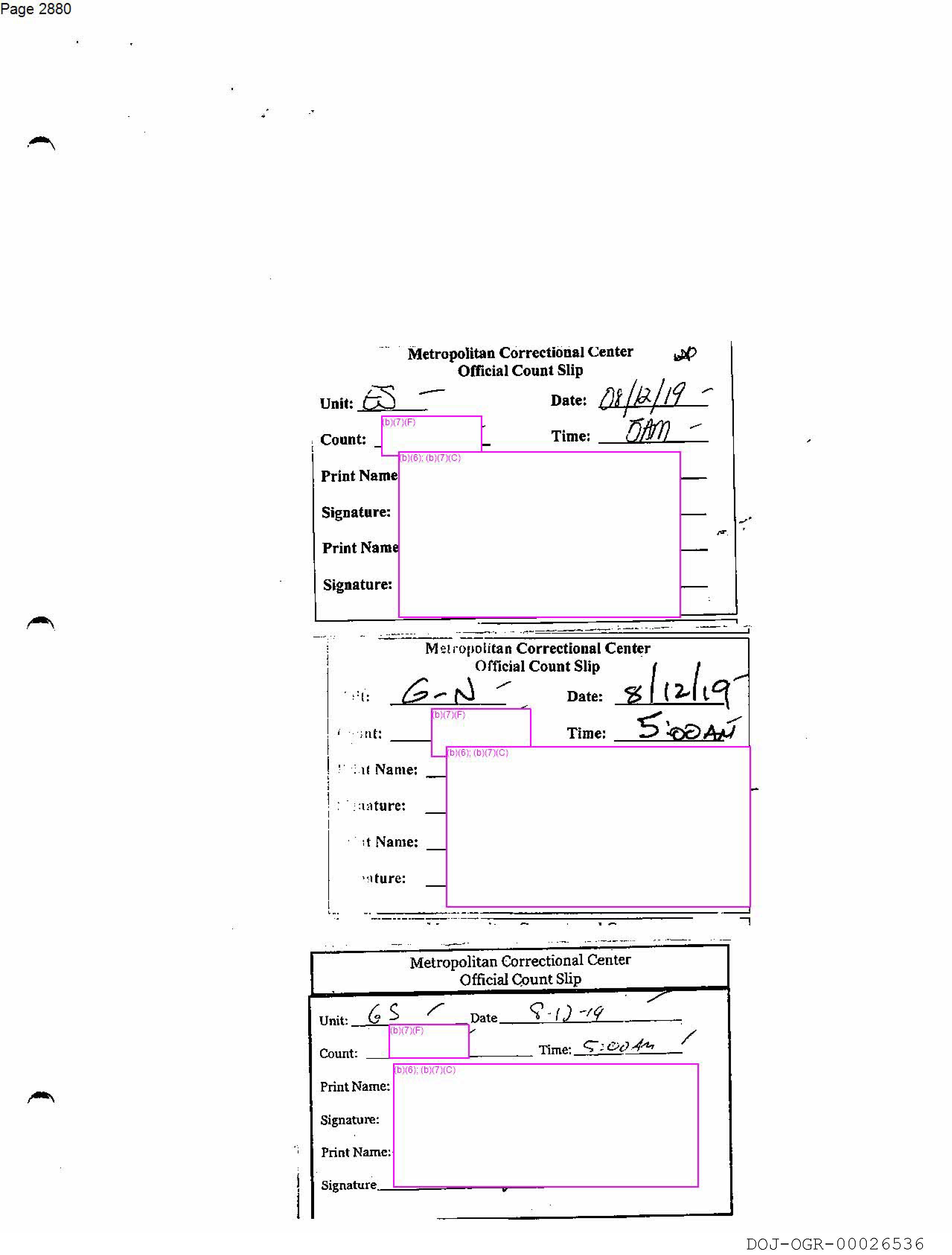 The image appears to be a photo of a document with various notes and annotations. There's redacted text across the upper part of the page, likely personal information such as names or contact details that have been obscured for privacy. Below this section, there are handwritten notes in blue ink, which seem to relate to appointments or schedules, possibly connected to medical visits given the context. The document is placed on a surface with visible lines and corners, suggesting it's part of an open folder or book. The overall style of the image is informal and utilitarian, typical of personal records or notes used for tracking information.