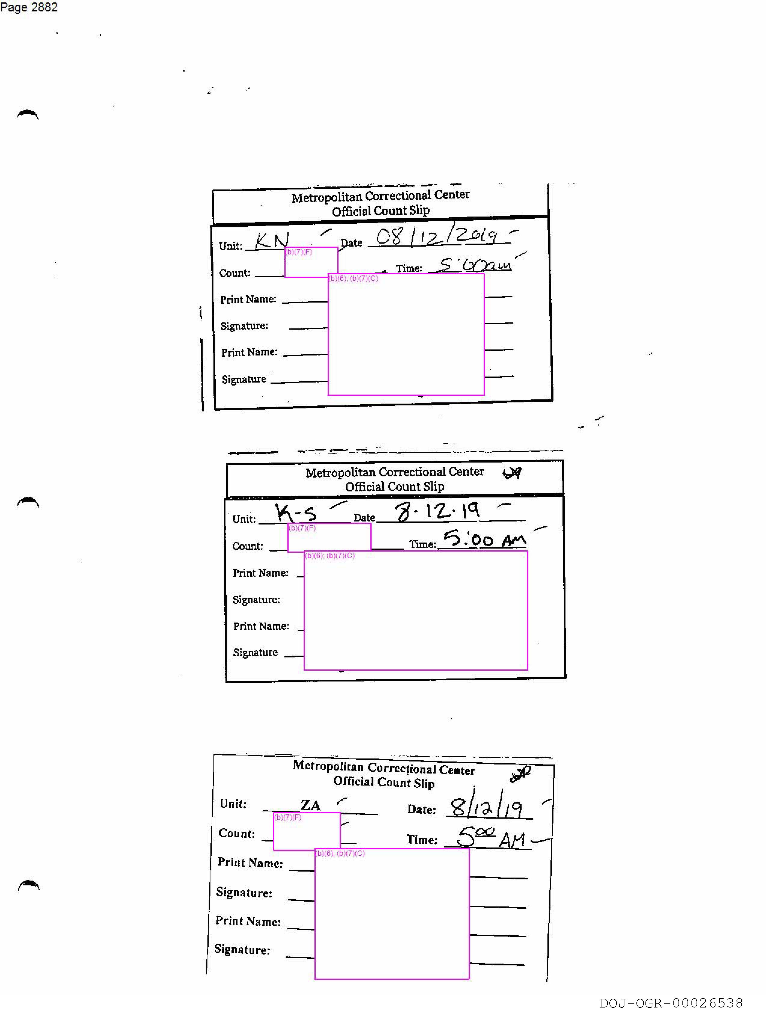 The image is a photograph of a printed document with multiple pages placed on top of each other, showing only the topmost page clearly. The document appears to be related to a court case, as indicated by terms like "Defendant," "Plaintiff," and "Motion for Summary Judgment." There are also references to evidence, such as Exhibit A, B, C, D, and E. The text is black on white paper with various handwritten annotations in red ink; these include words like "objection" and "motion granted/denied" near specific sections of the document, suggesting that this page has been reviewed or marked during a legal proceeding.