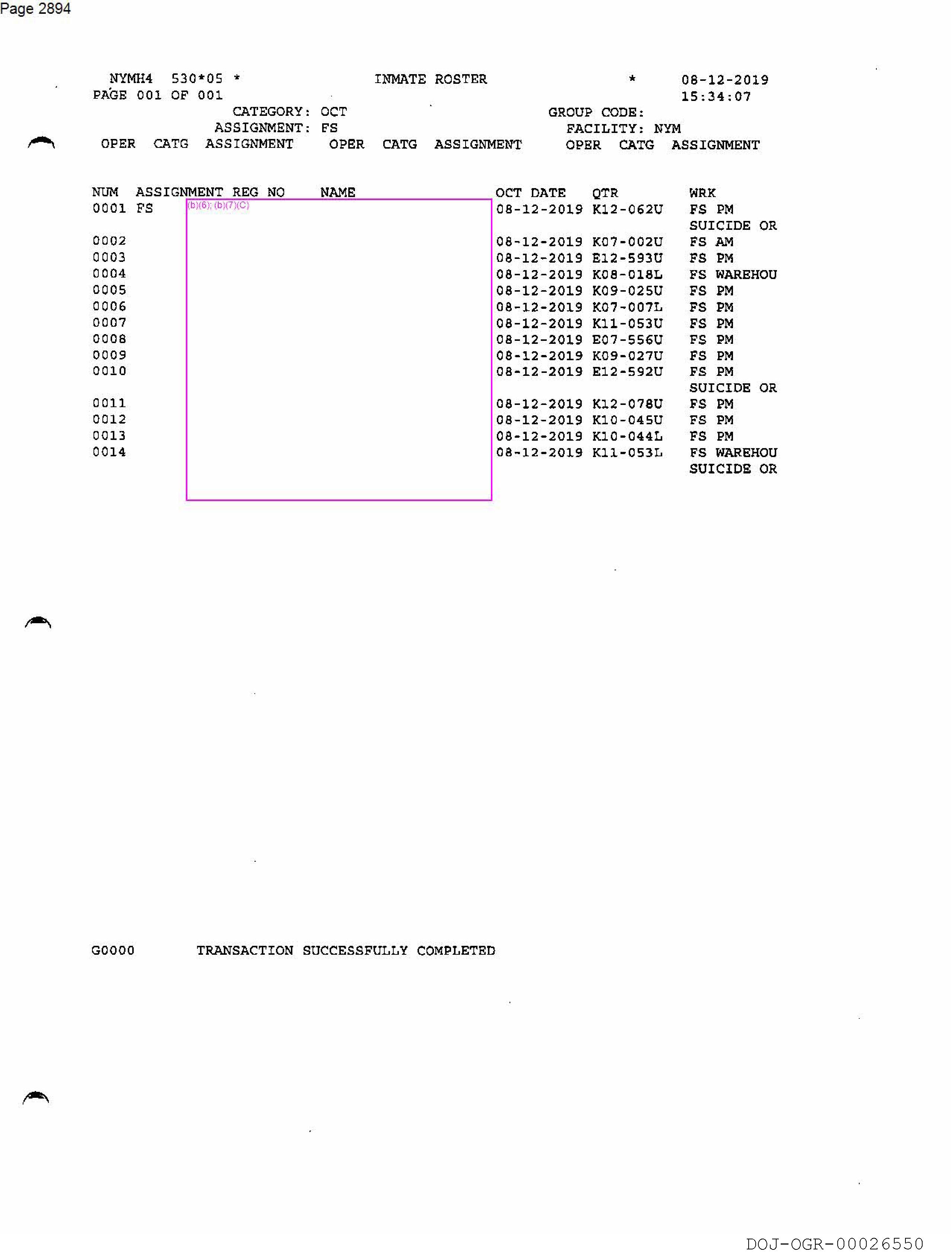 The image displays a scanned document with visible text and some blacked-out sections. The text appears to be from an official letter or report, possibly related to a legal case given the references to "Judge" and "Courtroom." There are also mentions of names that have been redacted. However, without more context, it's not possible to determine the exact nature of the document. The text is printed in black ink on a white background, indicating a standard typewritten format.