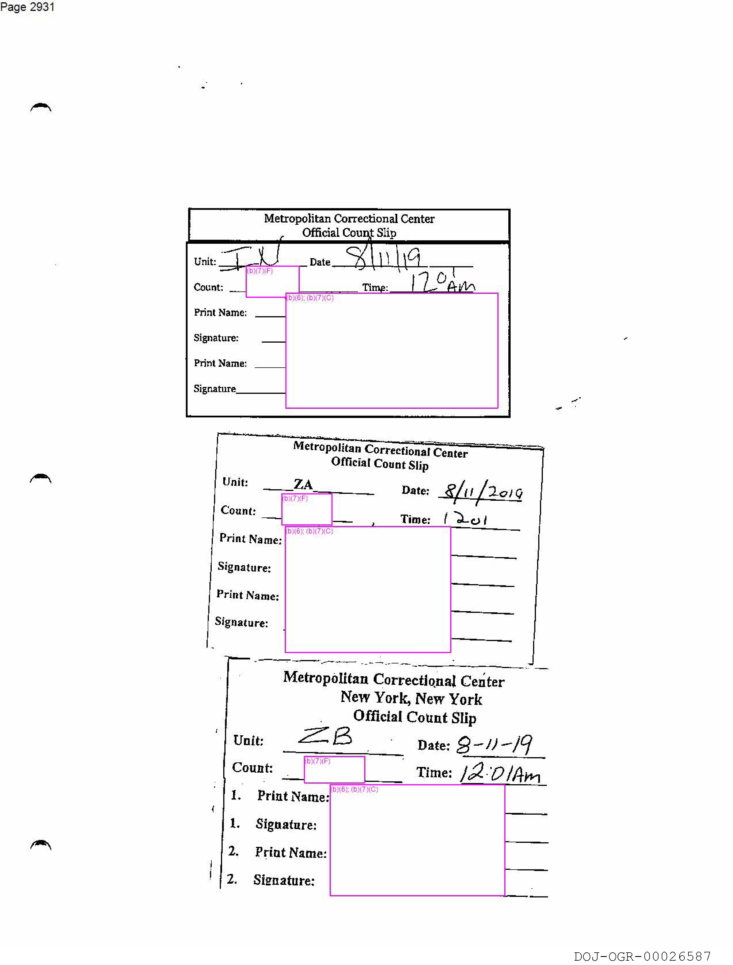 The image appears to be a scanned document with a handwritten note on it. The handwriting is not very clear and seems to be in blue ink. There are two sections where the writing overlaps, making some of the text difficult to decipher. The visible parts include what looks like a name at the top right corner, but the rest of the content is obscured by the handwritten note. The paper itself has horizontal lines suggesting it could be part of an official form or document. There are no people, locations, or other significant objects discernible in this image due to the focus on the text and handwriting.
