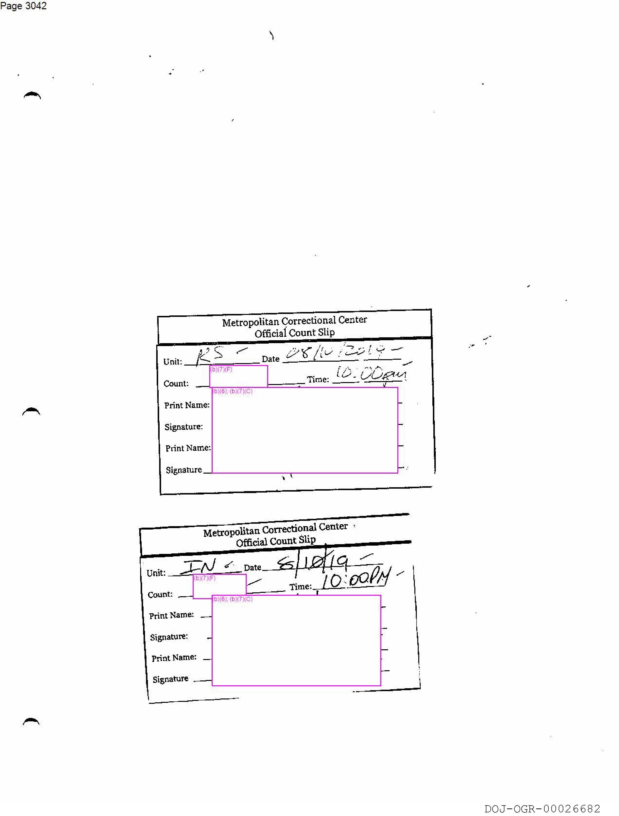 The image displays a scanned document with visible text and some blacked-out sections. The text appears to be from an official letter or report, possibly related to a legal case given the references to "Judge" and "Courtroom." There are also mentions of names that have been redacted. However, without more context, it's not possible to determine the exact nature of the document. The text is printed in black ink on a white background, indicating a standard typewritten format.