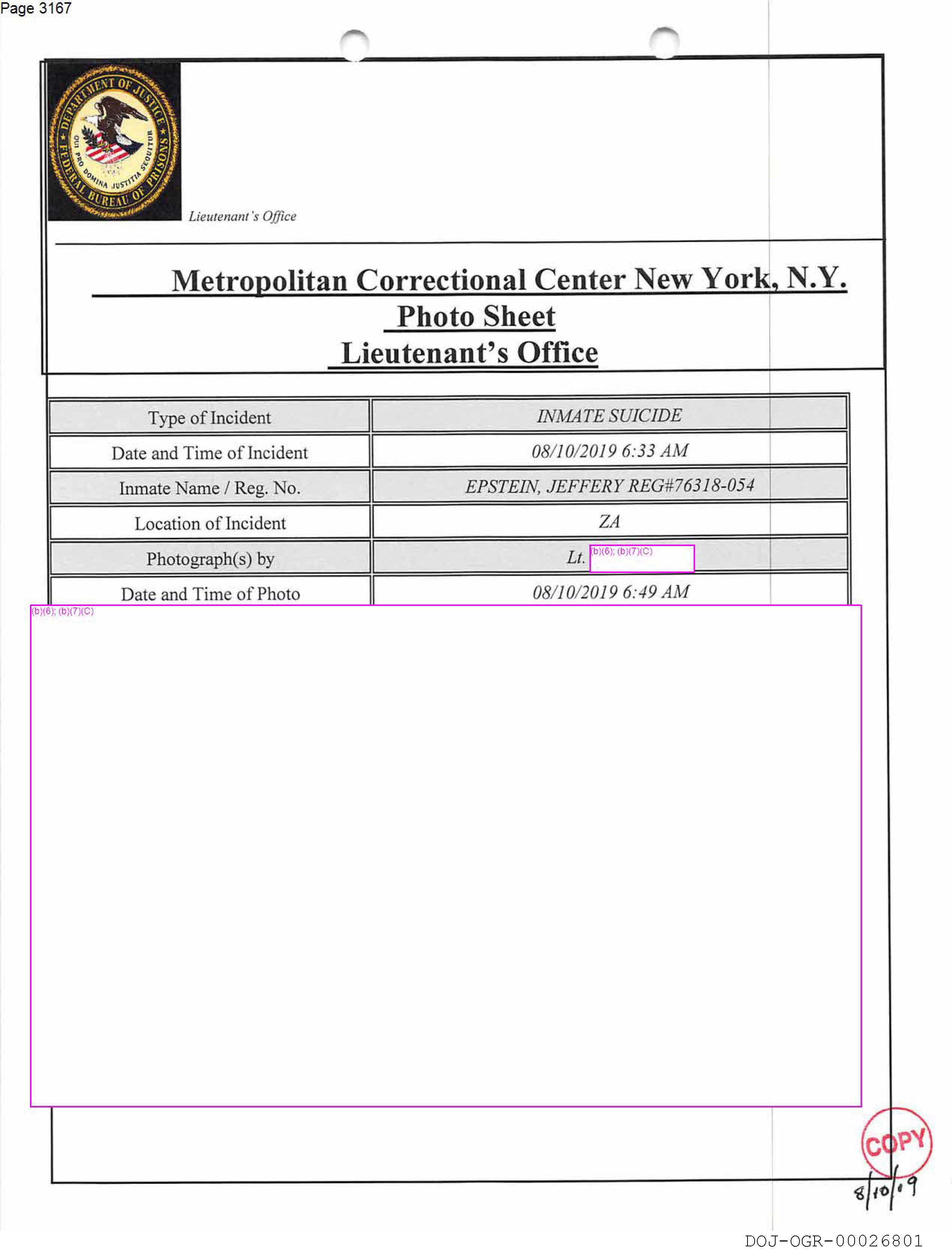 The image shows a document titled "Metropolitan Correctional Center New York, NY" with the address underneath it.