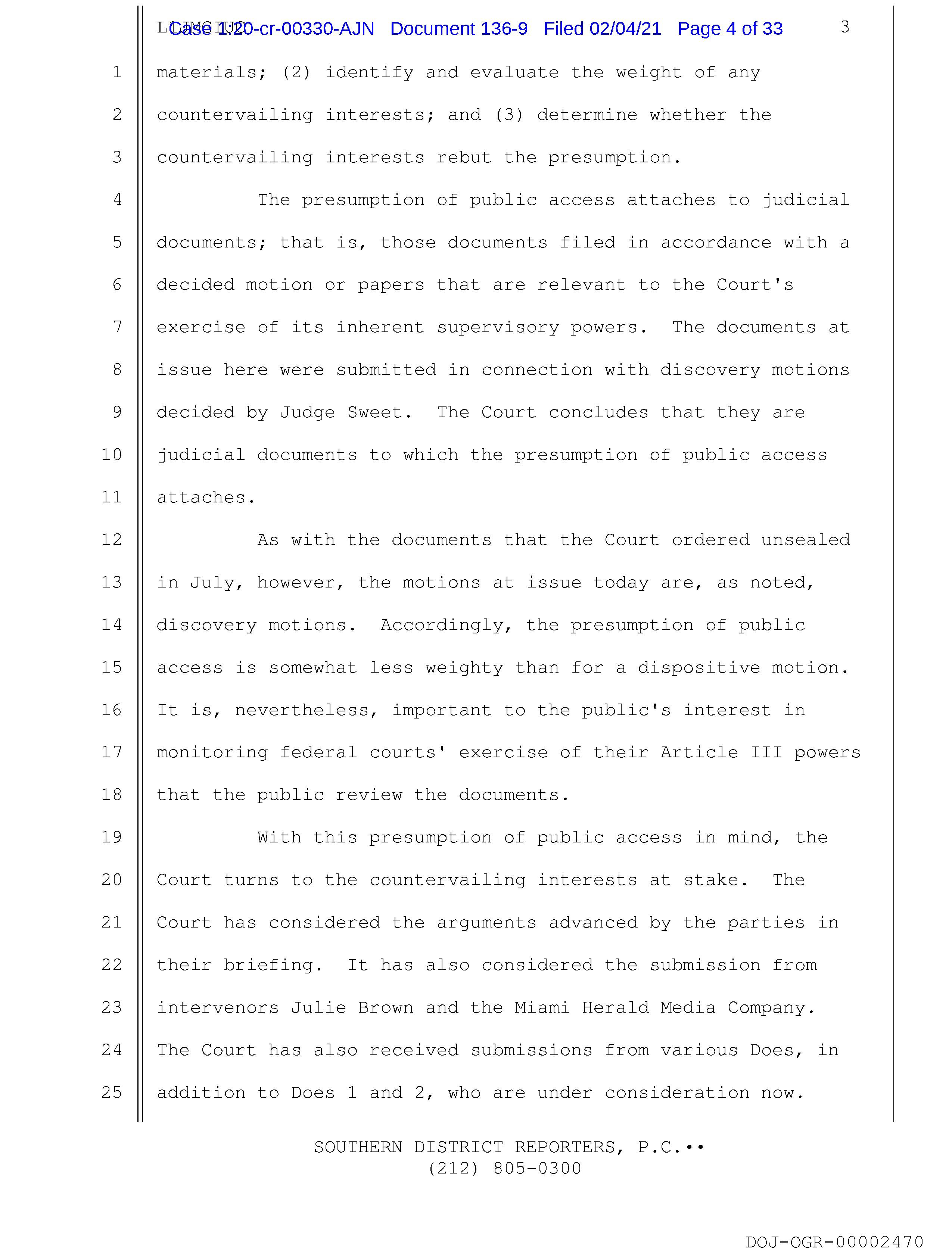 The image displays a scanned document with visible text and some blacked-out sections. The text appears to be from an official letter or report, possibly related to a legal case given the references to "Judge" and "Courtroom." There are also mentions of names that have been redacted. However, without more context, it's not possible to determine the exact nature of the document. The text is printed in black ink on a white background, indicating a standard typewritten format.