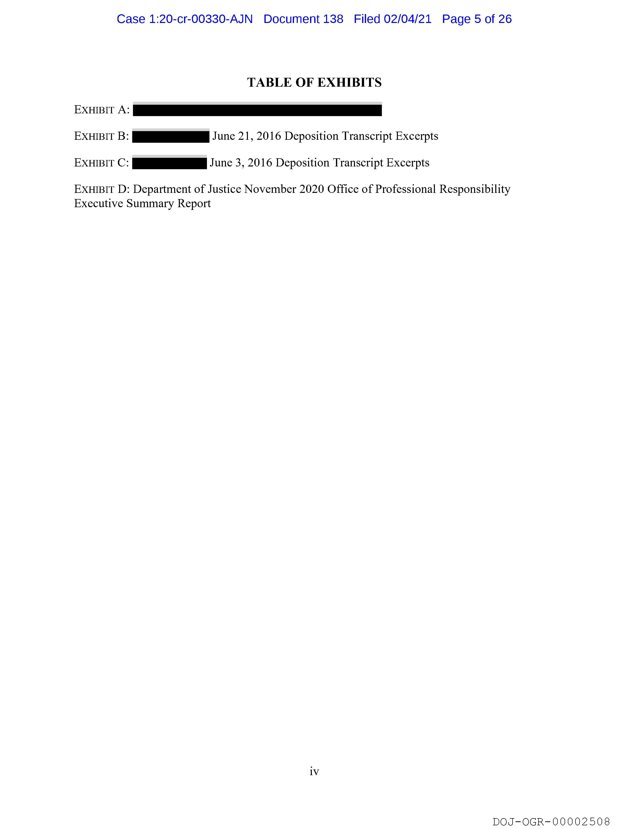 The image appears to be a document with a table of contents. At the top of the page, there's a header that includes a number and possibly some reference information that is redacted, denoted by '***' instead of actual text. Below the header, the title "Table of Contents" is visible. The body of the document consists of several numbered entries in bold typeface, each followed by the corresponding page number where the content can be found. The layout suggests a formal or official document, likely part of a larger report or manual.