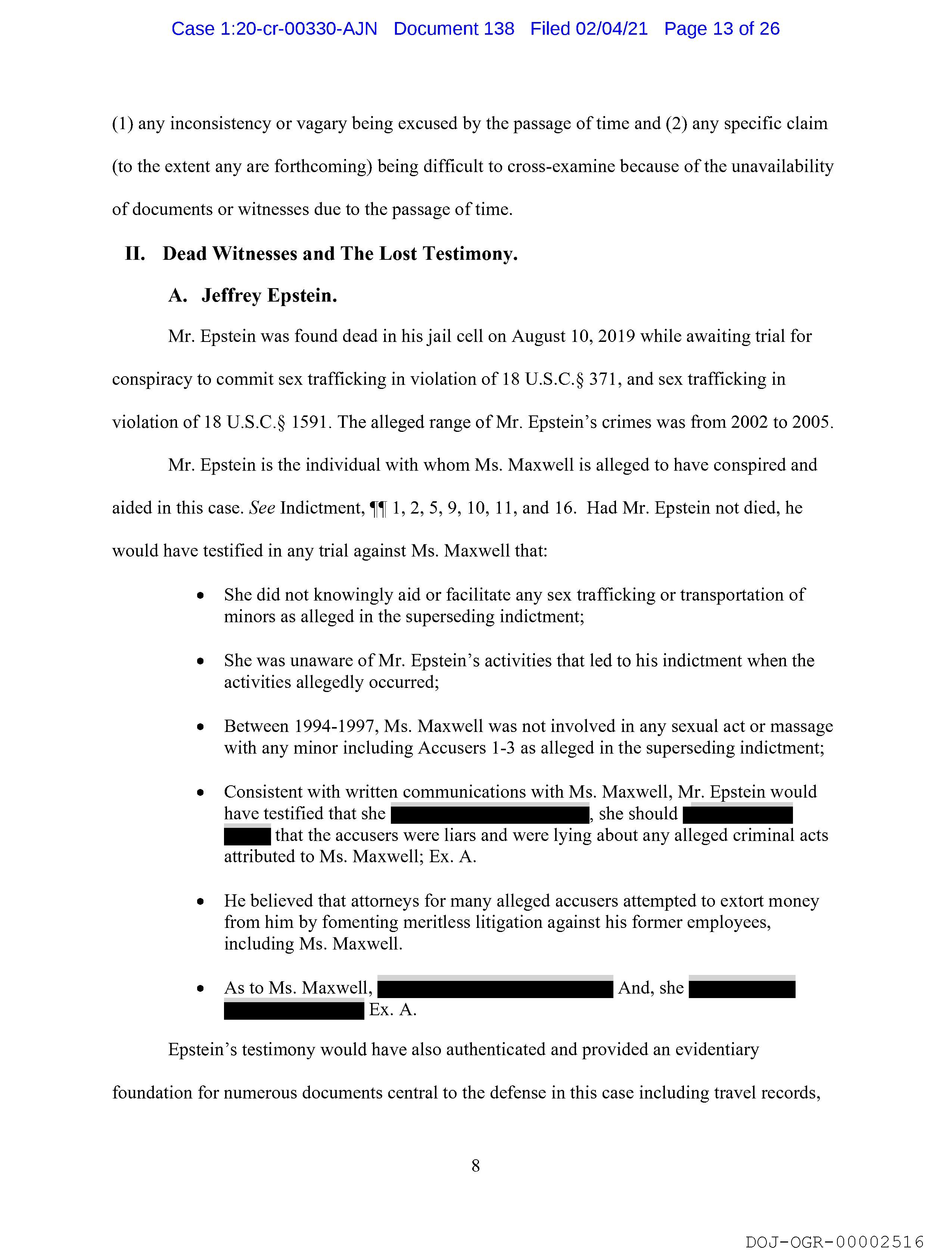 The image is a photograph of a printed document with text. The paper has a yellowish hue and appears to be aged, suggesting it might be a historical document or one that has been stored for some time. The visible text includes a list of questions, such as "Did you not know the person was dead?", indicating that this document may pertain to an investigation or legal proceeding where questions about a person's knowledge or state of mind are relevant. The page number in the upper right corner indicates it is from a larger document set. There are no people, locations, or significant objects other than the text itself.