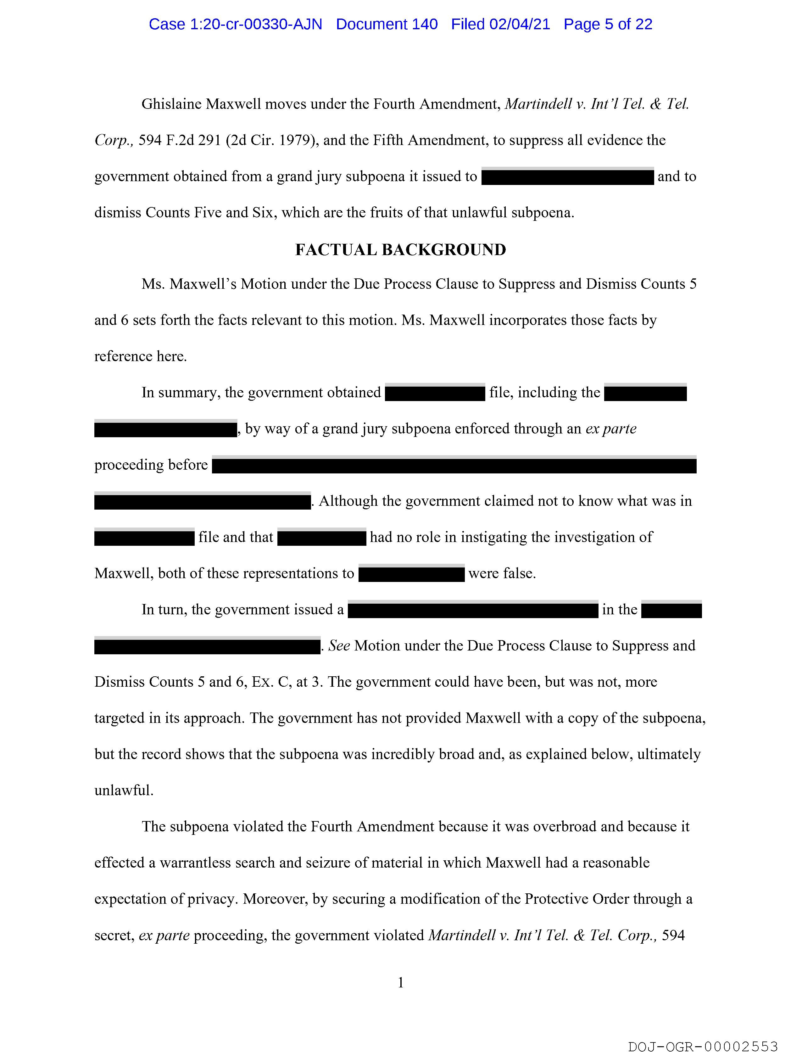 The image displays a scanned document with visible text and some blacked-out sections. The text appears to be from an official letter or report, possibly related to a legal case given the references to "Judge" and "Courtroom." There are also mentions of names that have been redacted. However, without more context, it's not possible to determine the exact nature of the document. The text is printed in black ink on a white background, indicating a standard typewritten format.