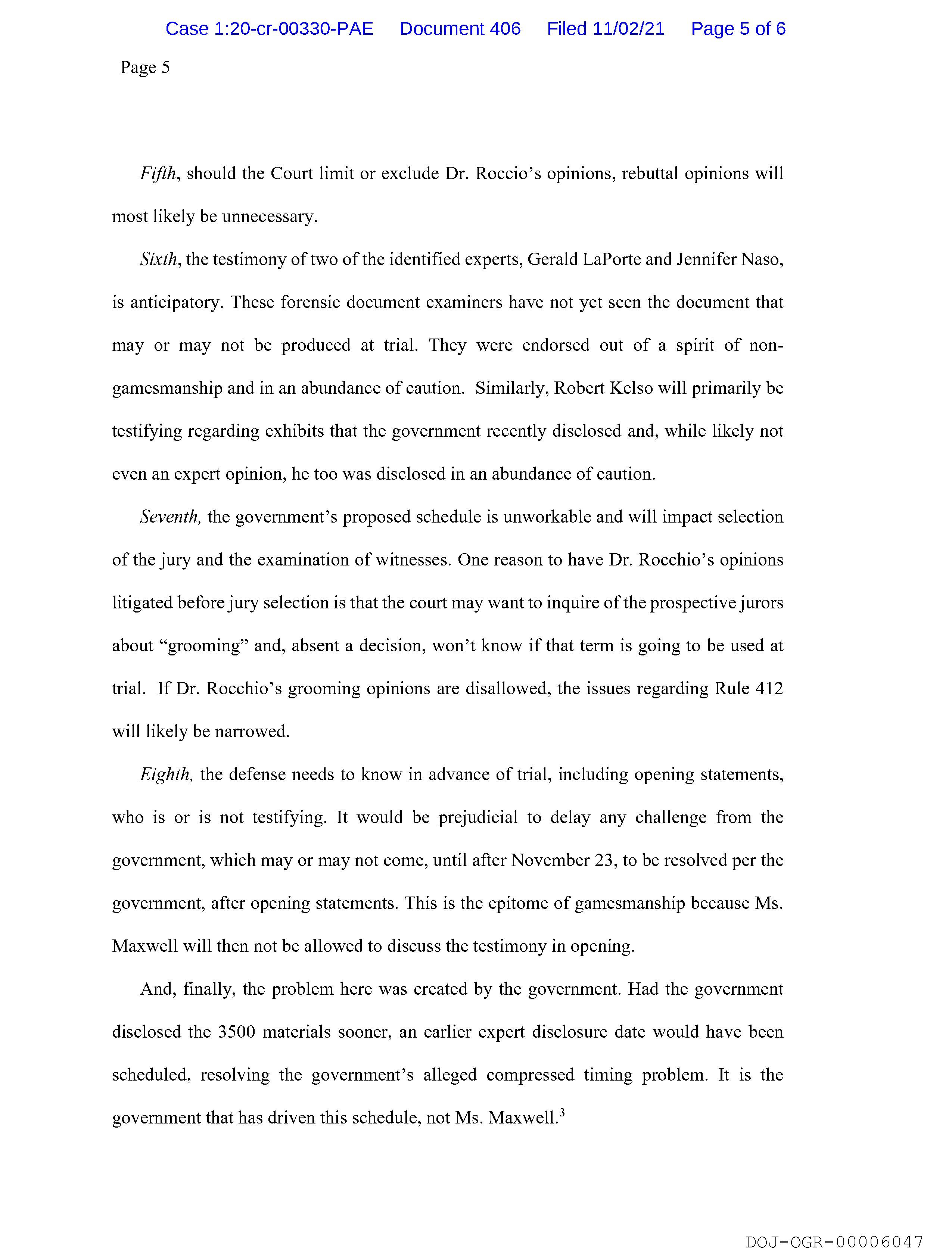 The image displays a scanned document with visible text and some blacked-out sections. The text appears to be from an official letter or report, possibly related to a legal case given the references to "Judge" and "Courtroom." There are also mentions of names that have been redacted. However, without more context, it's not possible to determine the exact nature of the document. The text is printed in black ink on a white background, indicating a standard typewritten format.